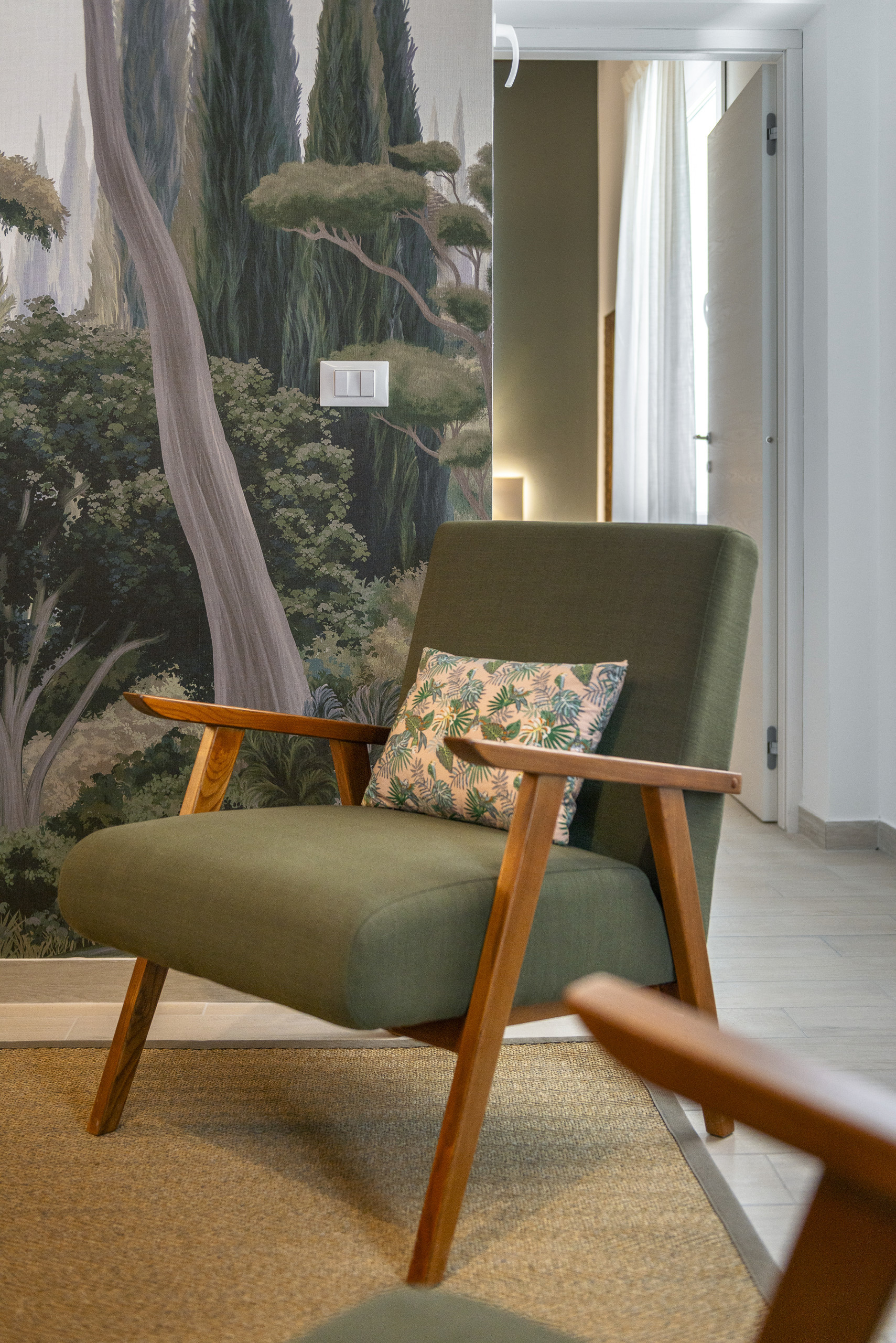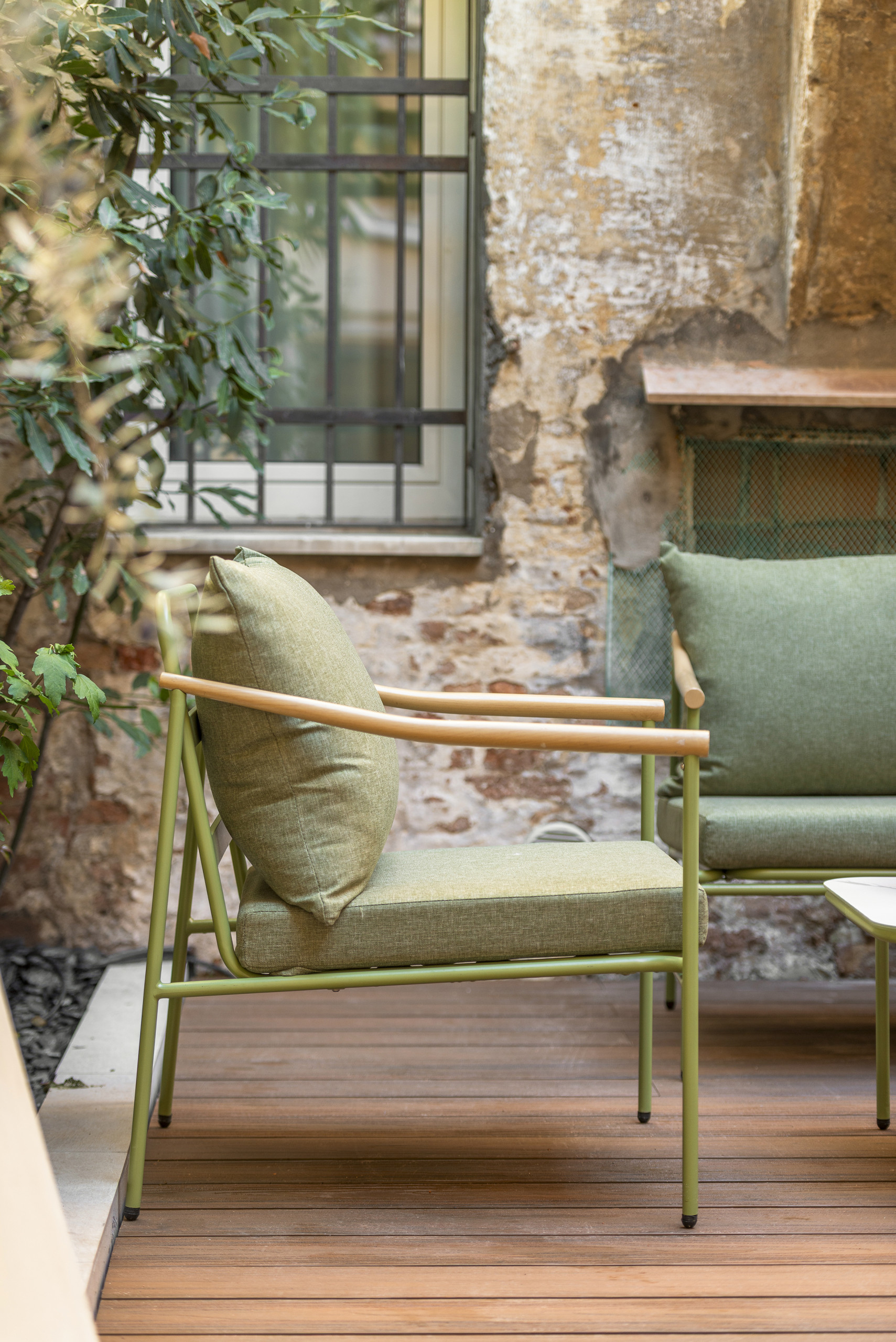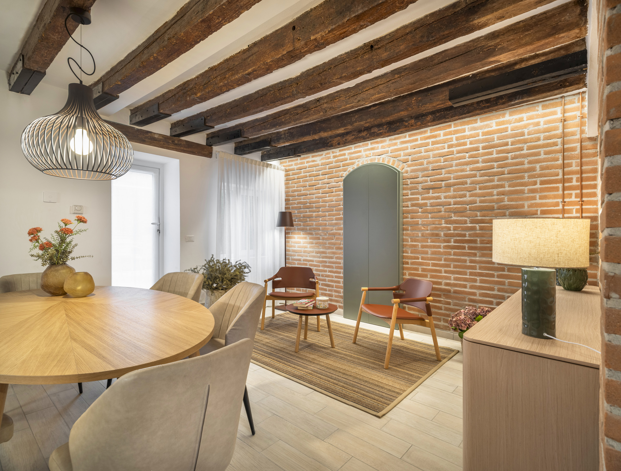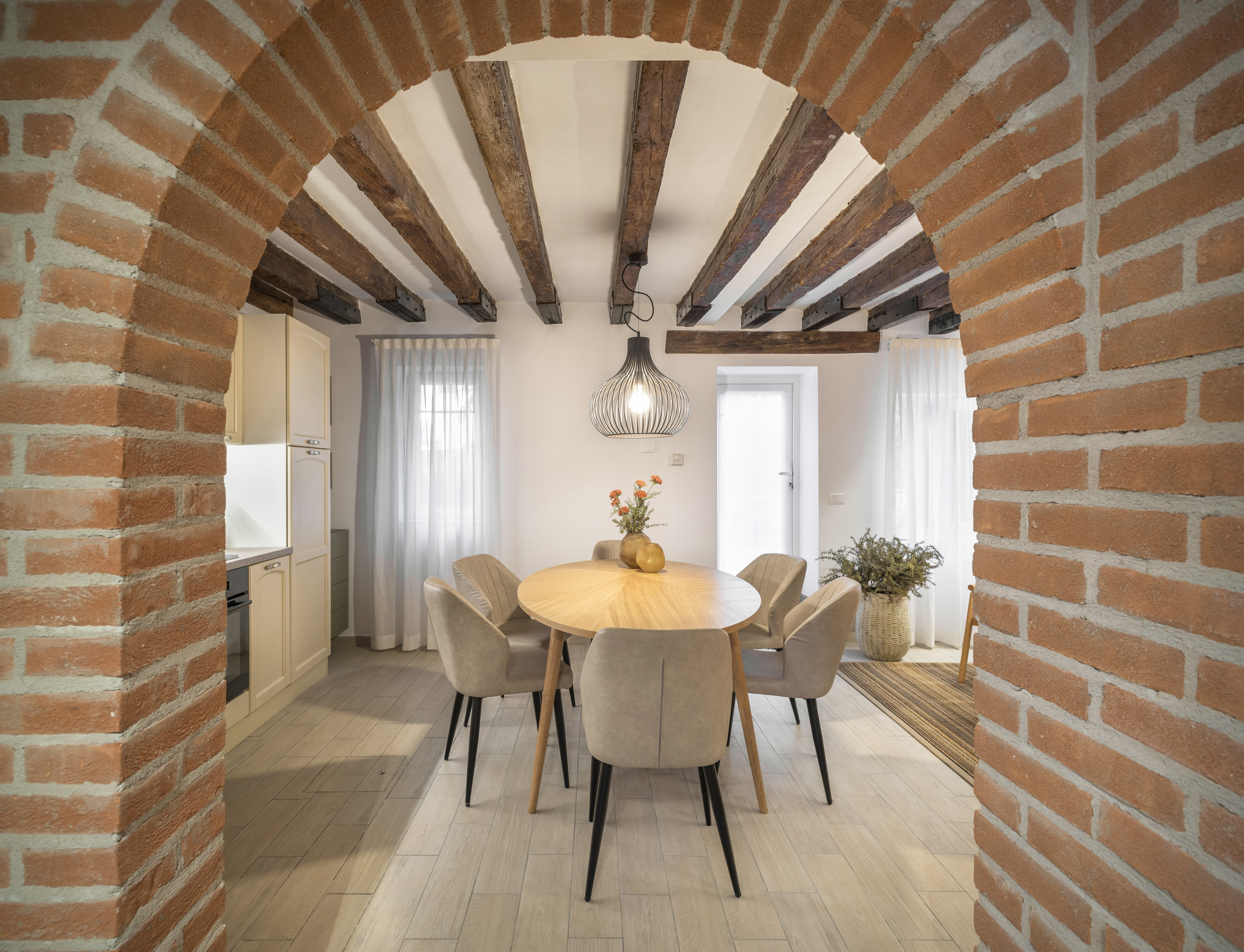 Al piano terra si trovano una cucina completamente attrezzata, una spaziosa sala da pranzo e un bagno. All’esterno è presente un piccolo spazio privato con divanetti e tavolo, dove trascorrere momenti di relax all’aria aperta.