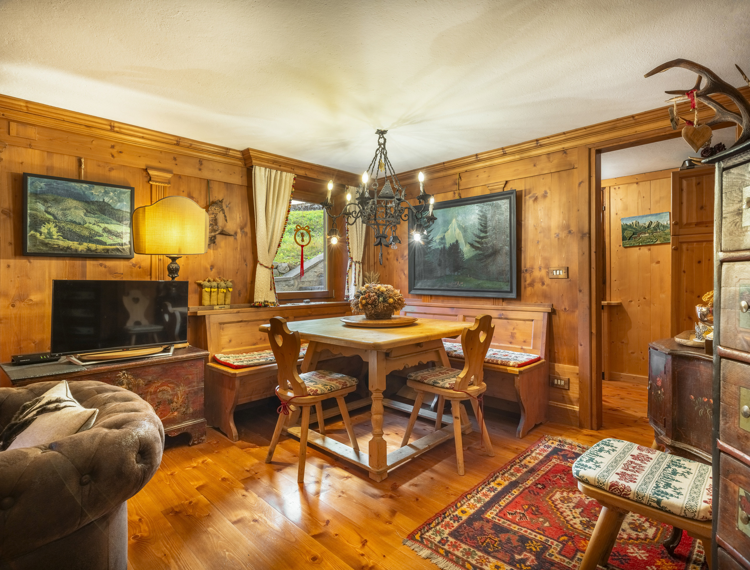 Immerso nel verde e nella tranquillità della località Salieto, a pochi minuti dal centro di Cortina d’Ampezzo, questo accogliente appartamento al piano terra in autentico stile ampezzano offre un’atmosfera calda e accogliente, perfetta per chi desidera vivere la montagna in totale relax. L’alloggio è composto da una camera matrimoniale, due camere con letti singoli, un bagno e un ampio soggiorno con tavolo da pranzo e cucina attrezzata ed è dotato di posto auto esterno riservato. Gli interni, curati nei dettagli, richiamano la tradizione locale con materiali naturali e arredi tipici che creano un ambiente elegante e confortevole. La posizione, immersa nella natura, regala una straordinaria vista sulle Dolomiti e la pace di un contesto riservato, pur restando comodo ai principali servizi e alle attrazioni di Cortina. Una soluzione ideale per famiglie o gruppi di amici che desiderano trascorrere una vacanza autentica tra natura, comfort e tradizione.