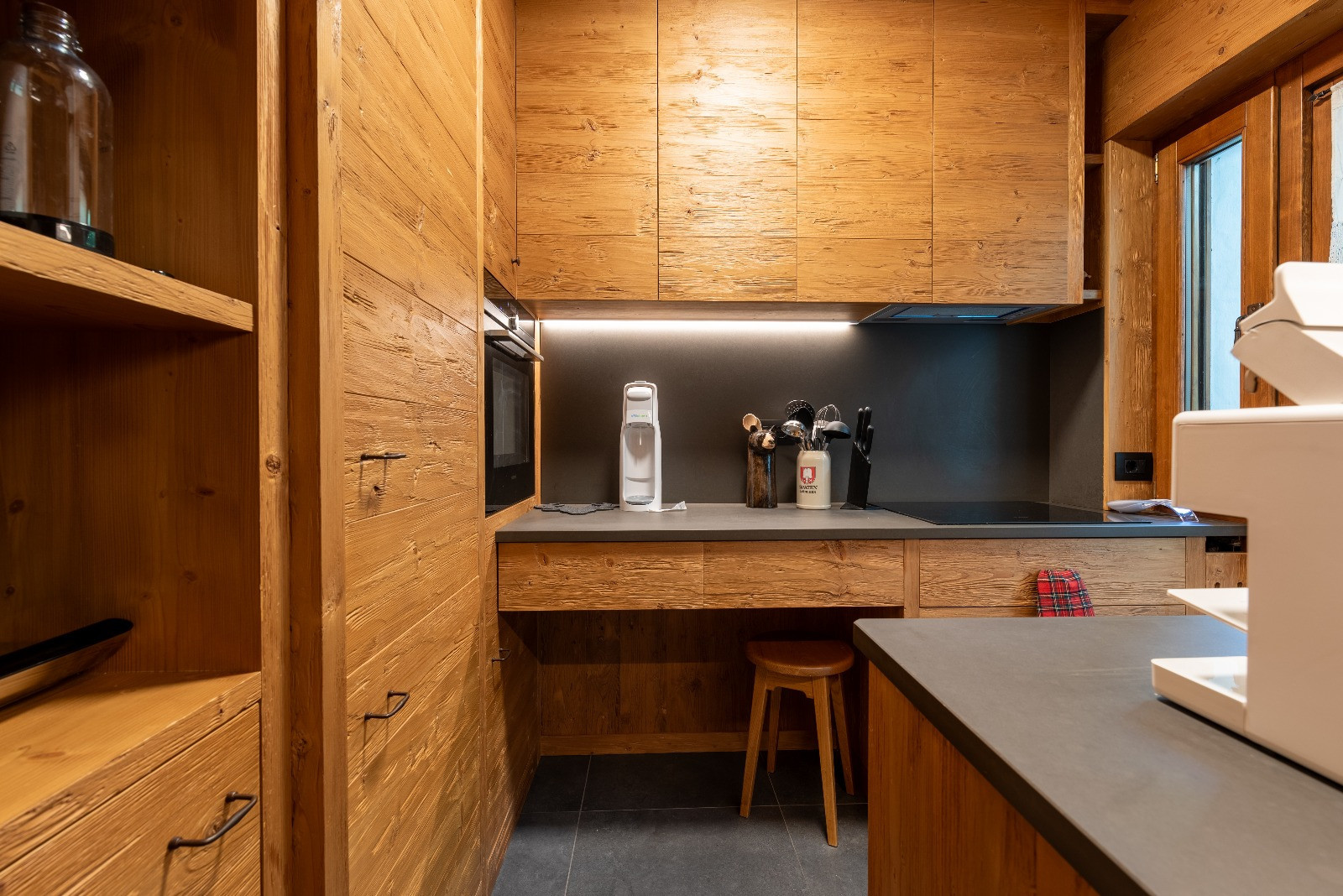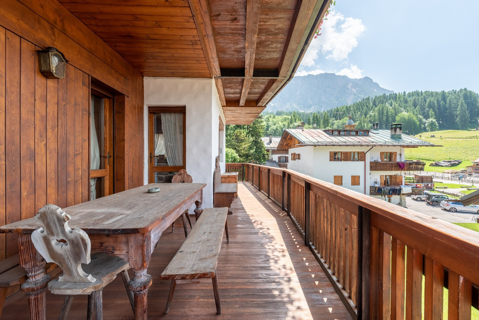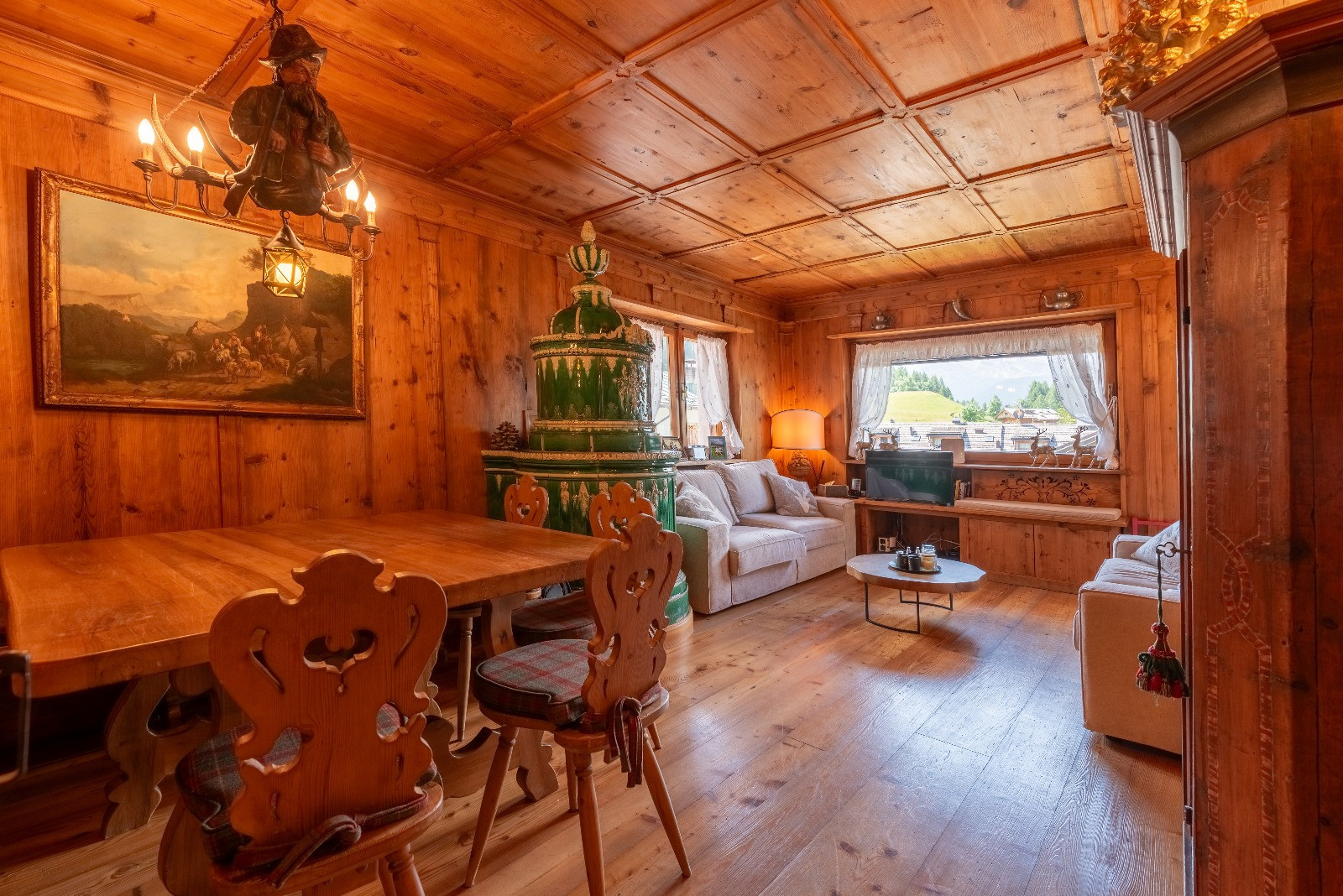 Arredato in tipico stile ampezzano, l'appartamento combina il calore del legno con la funzionalità degli spazi, offrendo un ambiente accogliente e ben curato. È dotato di connessione Wi-Fi, riscaldamento autonomo e dispone di due comodi posti auto coperti.