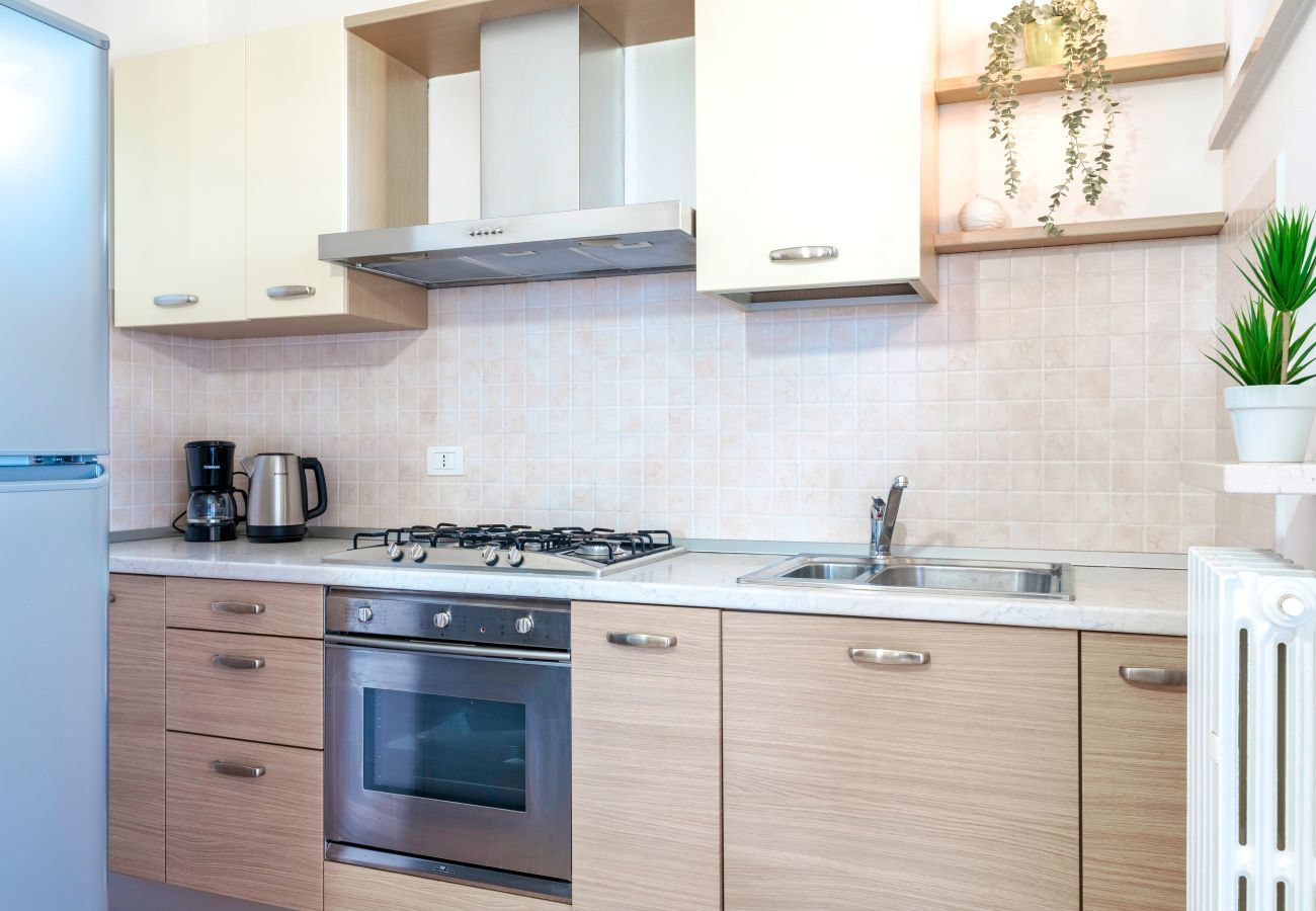 L'appartamento è dotato di un angolo cottura attrezzato con fornello a gas a quattro fuochi, forno a microonde, bollitore, tostapane, macchina da caffè tedesca, frigo con congelatore, tavolo con 4 sedie. TV satellitare e aria condizionata inclusi nel prezzo. La zona notte è composta da una spaziosa camera matrimoniale arredata in stile classico con grande guardaroba e cassettiera ed una graziosa cameretta con letto a castello e guardaroba. Entrambe le stanze da letto sono dotate di una porta-finestra che permette un affaccio diretto sul verde giardino. Bagno finestrato con cabina doccia, asciugacapelli e lavatrice a disposizione degli ospiti. Posto auto riservato in garage. Appartamento per non fumatori. Animali di piccola taglia ammessi su richiesta.