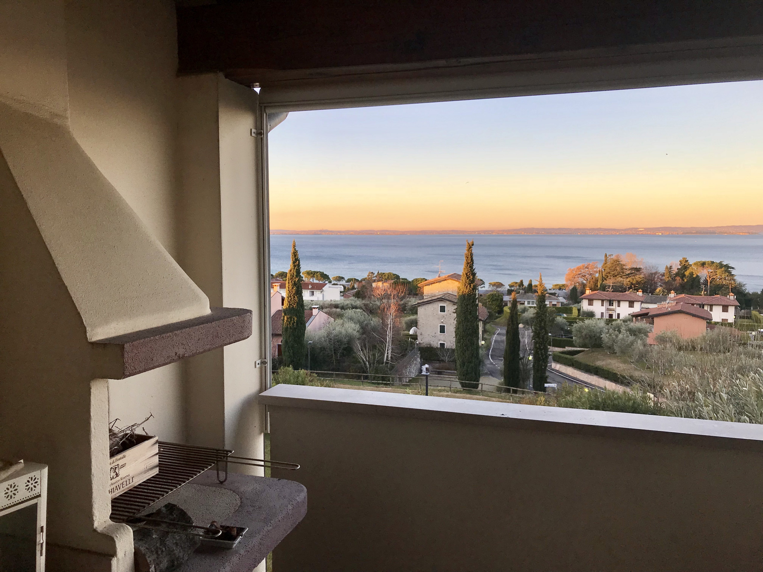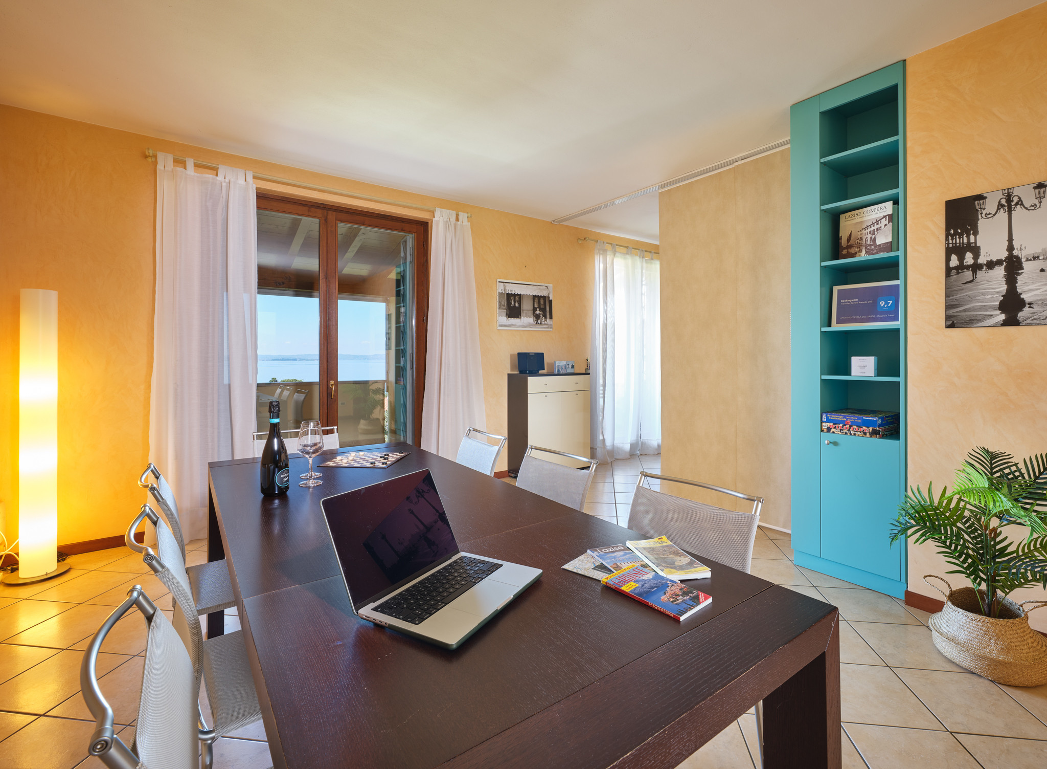 La terrazza è il punto forte di questo appartamento, si ha una vista completa sul lago di Garda rendendo le colazioni degli spetvis di più