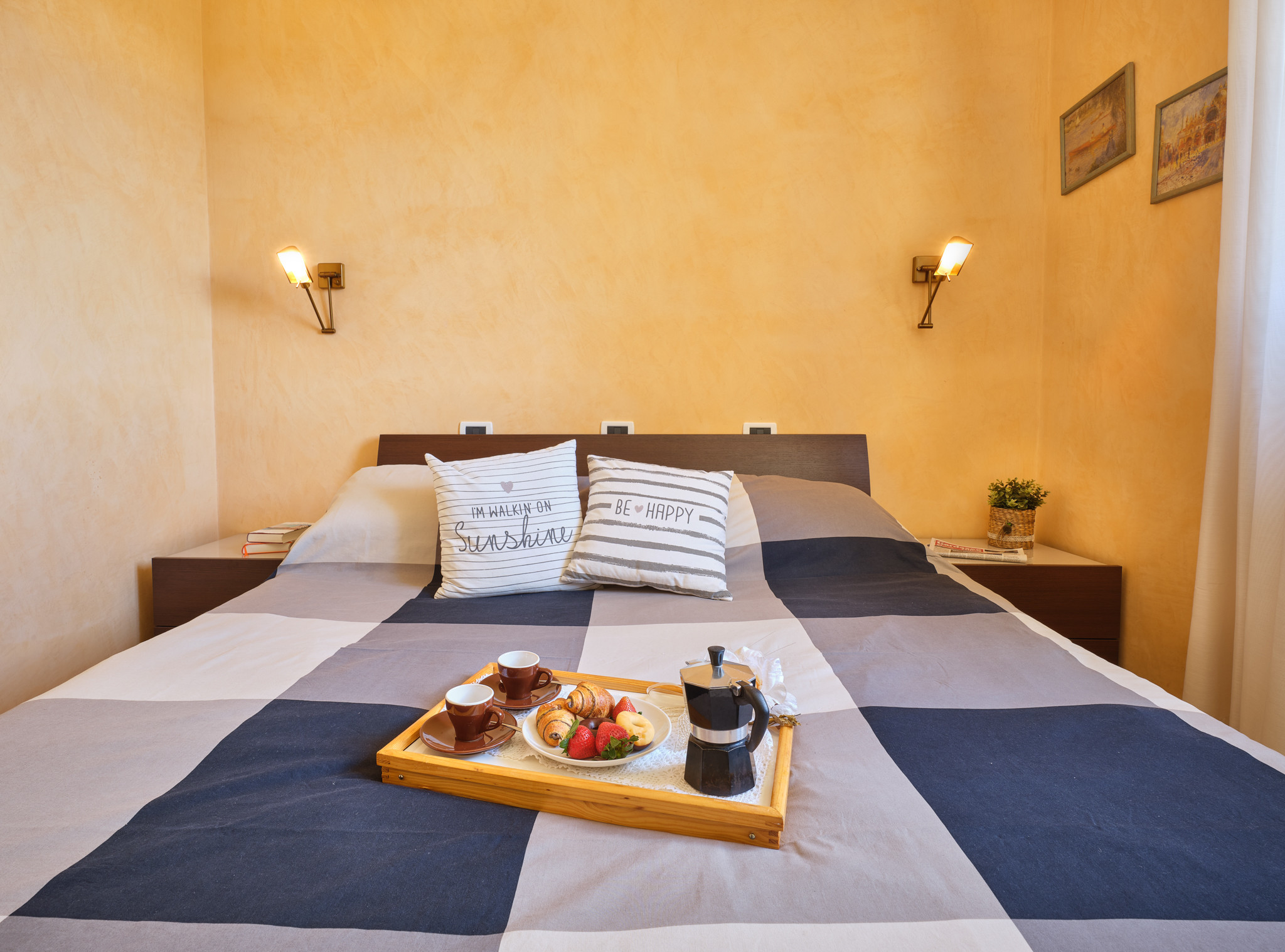L’appartamento è situato al primo piano e dispone di ampia e luminosa zona giorno con cucina attrezzata con pentole e stoviglie e dotata di fornello a 4 fuochi, frigorifero, forno, lavastoviglie, tostapane, bollitore, frullatore. In ingresso è presente un ampio armadio appendiabiti e porta scarpe. La zona pranzo è attrezzata con un grande tavolo ed un divano letto alla francese (adatto ad un adulto o due bambini) oltre ad una poltrona letto singola. La zona relax dove sono posizionati i divani può essere separata dalla zona pranzo con una tenda a pacchetto in modo da garantire maggiore privacy. Camera padronale con letto matrimoniale e armadio scorrevole. Bagno con doccia, WC e lavabo. Asciugacapelli in dotazione. L’appartamento dispone di riscaldamento a pavimento ed aria condizionata. Per garantire al meglio il Vostro relax vi informiamo che per scelta dei proprietari l’appartamento non è provvisto di televisore. Dispone invece di connessione wi-fi gratuita e moltissimi libri.