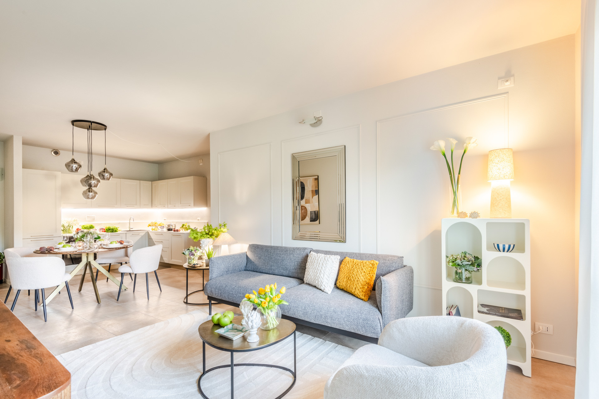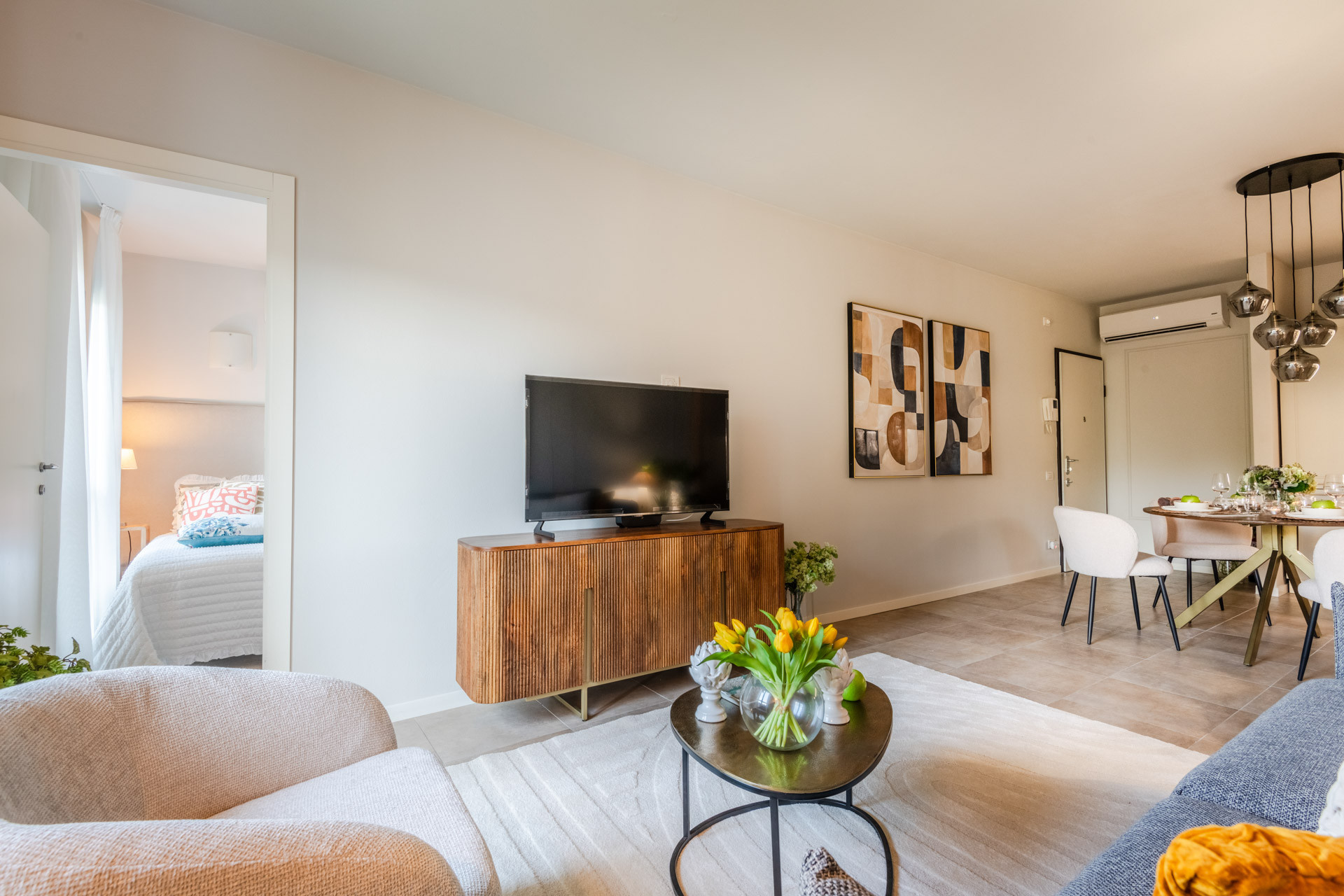 L'appartamento dispone di due camere da letto con altrettanti letti matrimoniali, garantendo privacy e comfort per tutti gli ospiti. La zona living è dotata di aria condizionata e TV satellitare, mentre la cucina all'americana è completamente accessoriata con elettrodomestici di ultima generazione: frigorifero, forno, lavastoviglie, macchina del caffè, microonde e molto altro ancora.