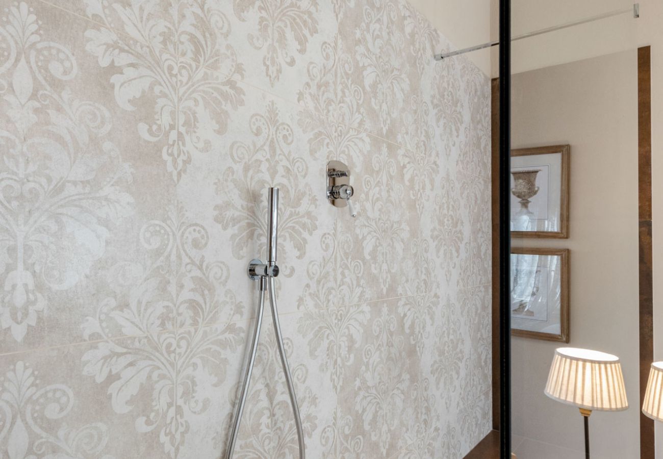 Affascinanti grigi, bianchi persuasivi, toni scuri avvolgenti e tocchi di oro e argento completano la tavolozza dei colori. Stampe antiche di gusto e opere d'arte in evidenza adornano le pareti calde. La cucina completamente attrezzata, con i migliori mobili italiani, si unisce al raffinato soggiorno, consentendo facilmente di trasportare i pasti tra i due ambienti. Pranzare sotto le luci scintillanti del lampadario ornato che gocciola sopra il tavolo elegante e le sedie in velluto. Una posizione pittoresca, che offre vedute suggestive di Lucca, è il punto perfetto per fuggire via per un momento di riflessione.