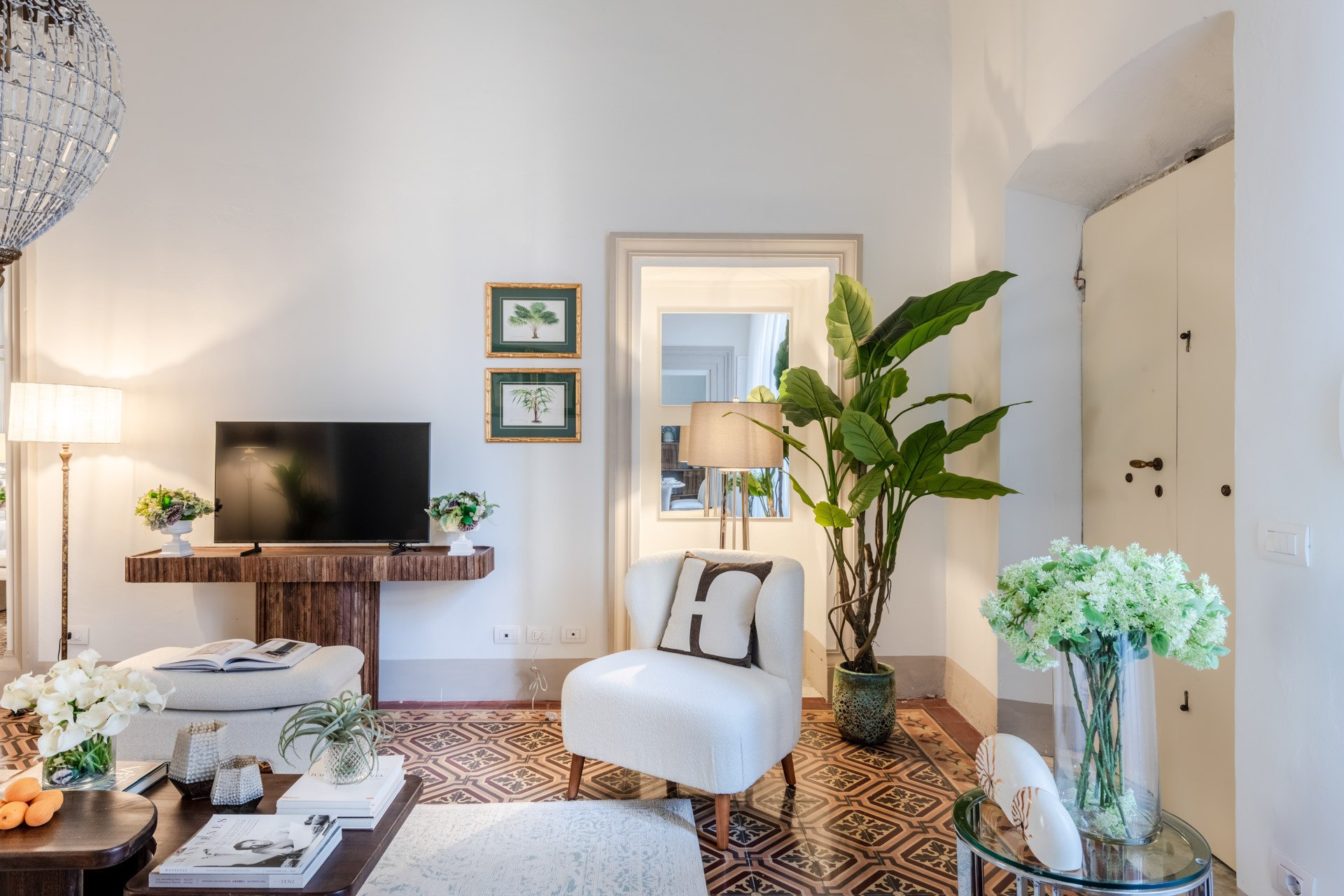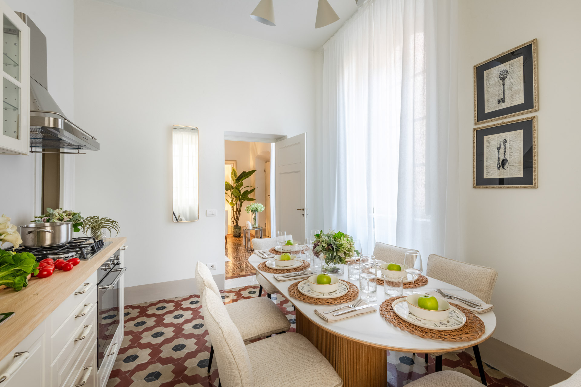 L'appartamento è completamente attrezzato e arredato con gusto, combinando eleganza e funzionalità. La zona giorno include una cucina indipendente e attrezzata, dotata di tutti i comfort: frigorifero, lavatrice, macchina del caffè, forno, friggitrice, microonde e una ricca dotazione di stoviglie. La presenza del condizionatore e di un sistema di riscaldamento a pompa di calore garantisce il massimo comfort in ogni stagione.