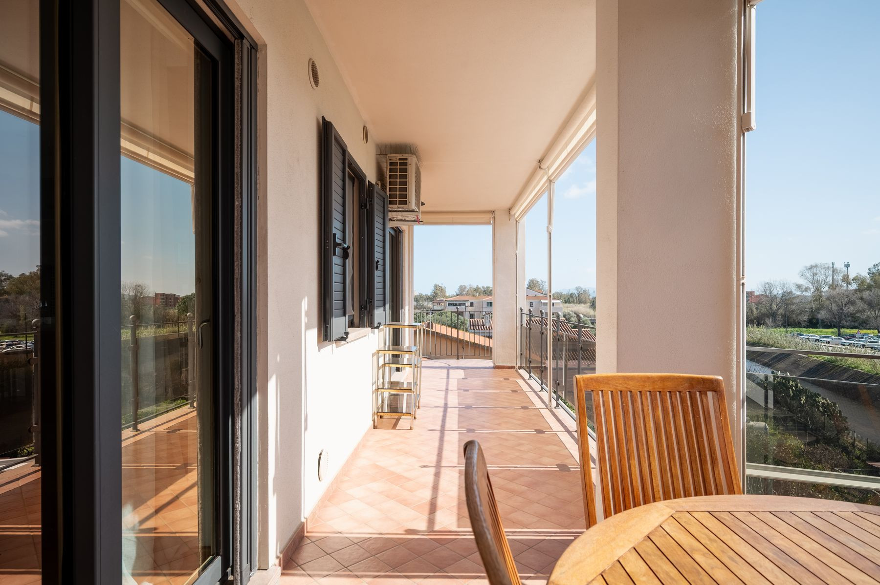 La terrazza panoramica privata offre uno spazio esterno funzionale e riservato, dotato di cucina attrezzata, ideale per colazioni, pranzi veloci o momenti di relax dopo una giornata al mare o di lavoro. L’edificio è dotato di ascensore, rendendo l’accesso semplice e pratico.