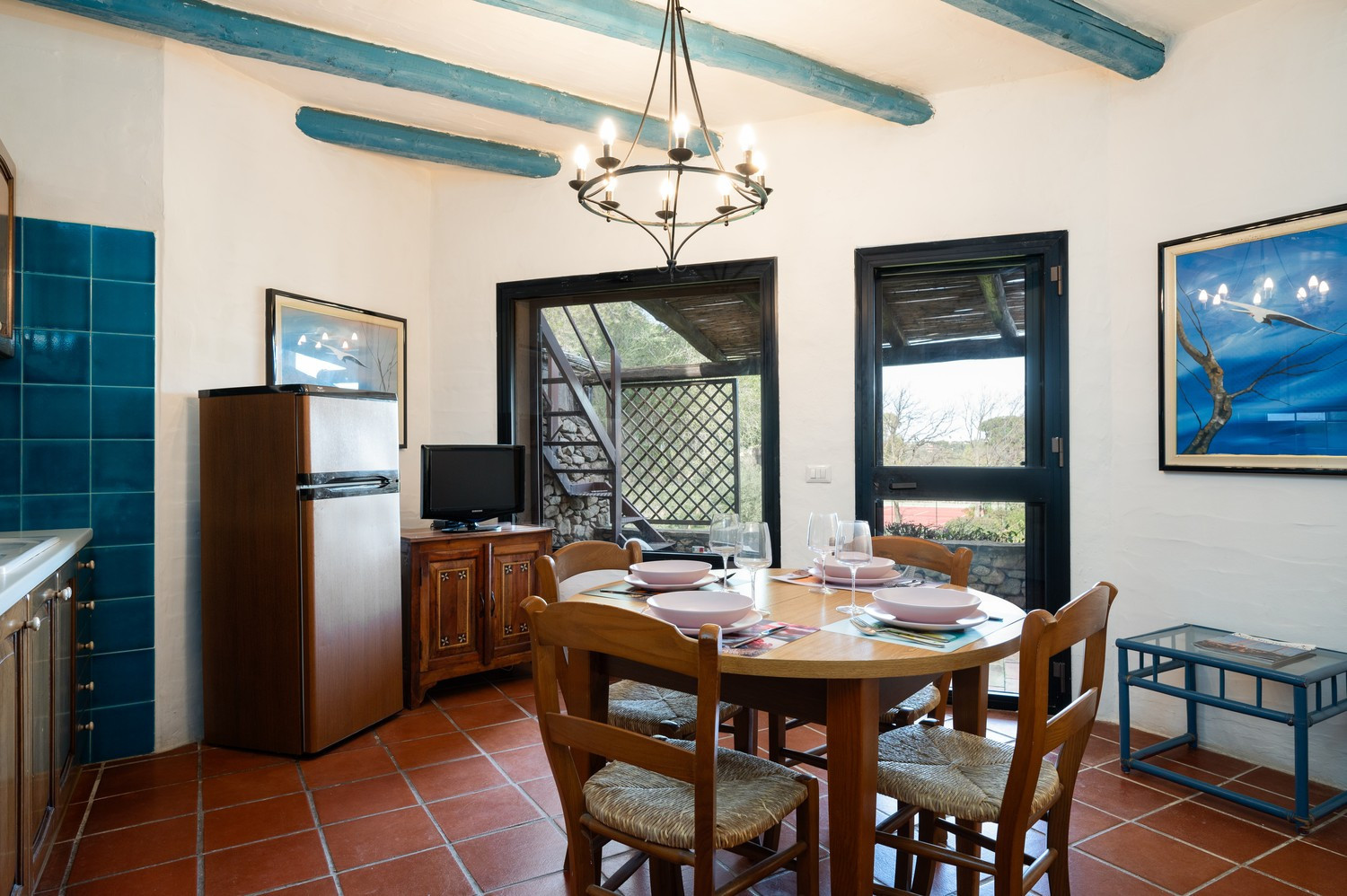 SPAZI ESTERNILa veranda coperta è perfetta per pranzi e cene all’aperto, con vista panoramica sul mare e sulla vegetazione tipica della macchia mediterranea. All’esterno è disponibile un posto auto coperto riservato. La spiaggia rocciosa interna al residence è raggiungibile comodamente a piedi in pochi minuti. A disposizione degli ospiti anche una piscina condominiale stagionale e un campo da tennis immersi nel verde.