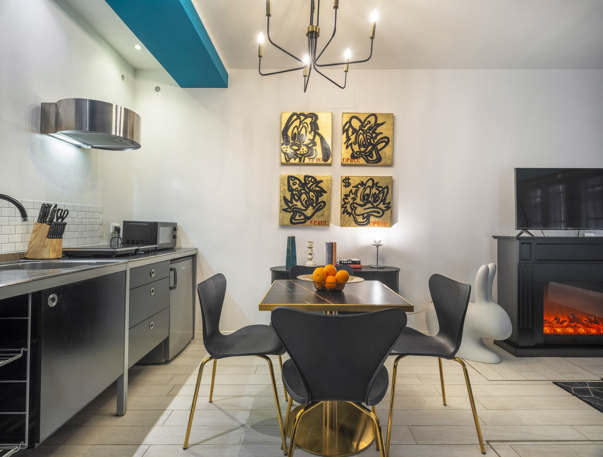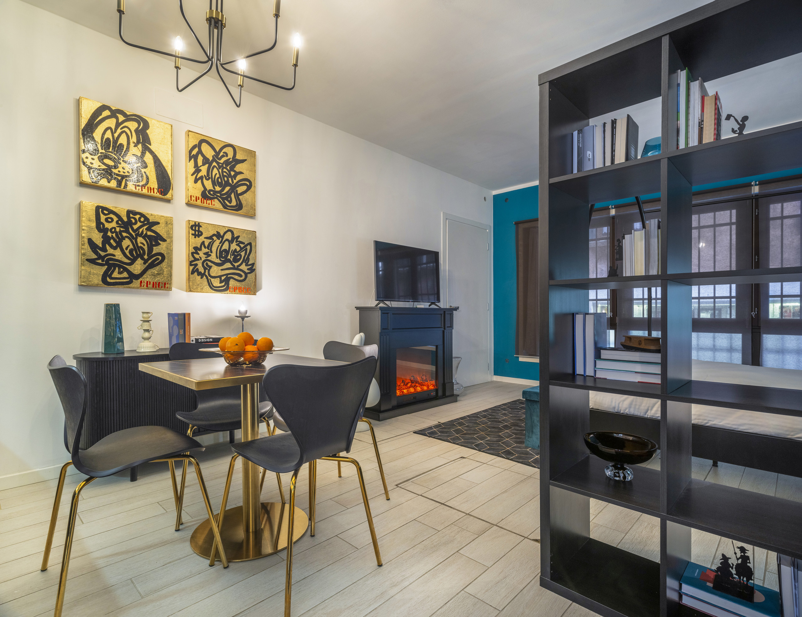 Lo spazio è pensato per stare comodi in due o tre persone: c’è un letto matrimoniale e un divano letto per un ospite in più. La piccola cucina è perfetta per una colazione lenta o una cena facile dopo una giornata in giro tra calli e bacari. La zona è vivace ma tranquilla, piena di vita veneziana vera: botteghe, bar, ristoranti e tutto quello che serve sono sotto casa. Ottimo punto di partenza per esplorare la città a piedi, senza fretta. Un posto pratico, curato e con una spiccata personalità, per chi vuole sentirsi subito a casa a Venezia.