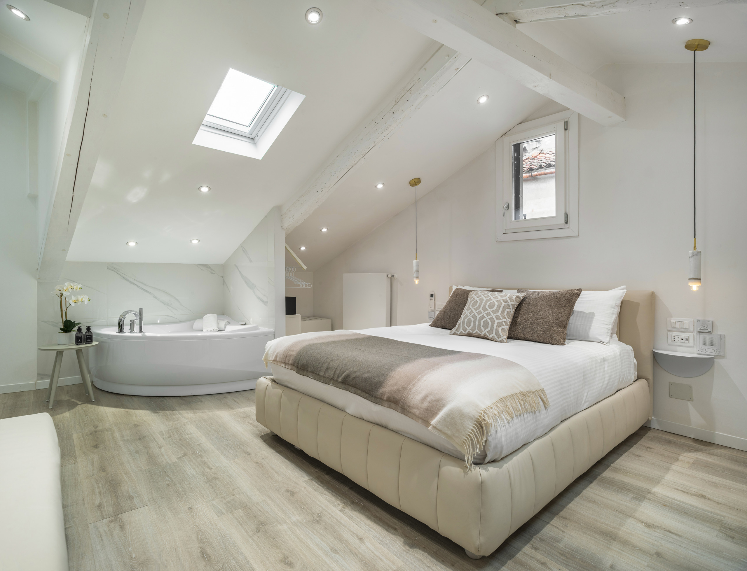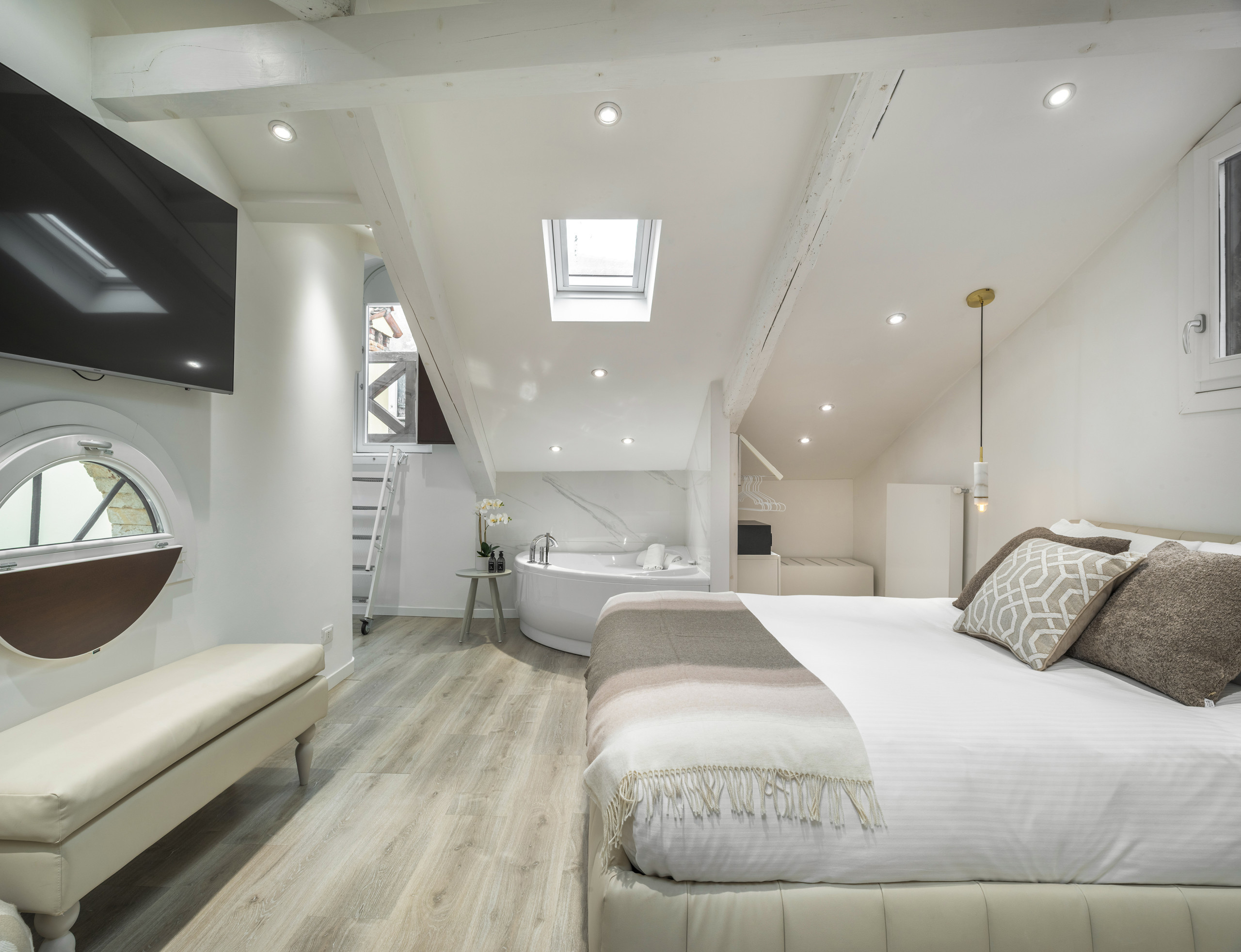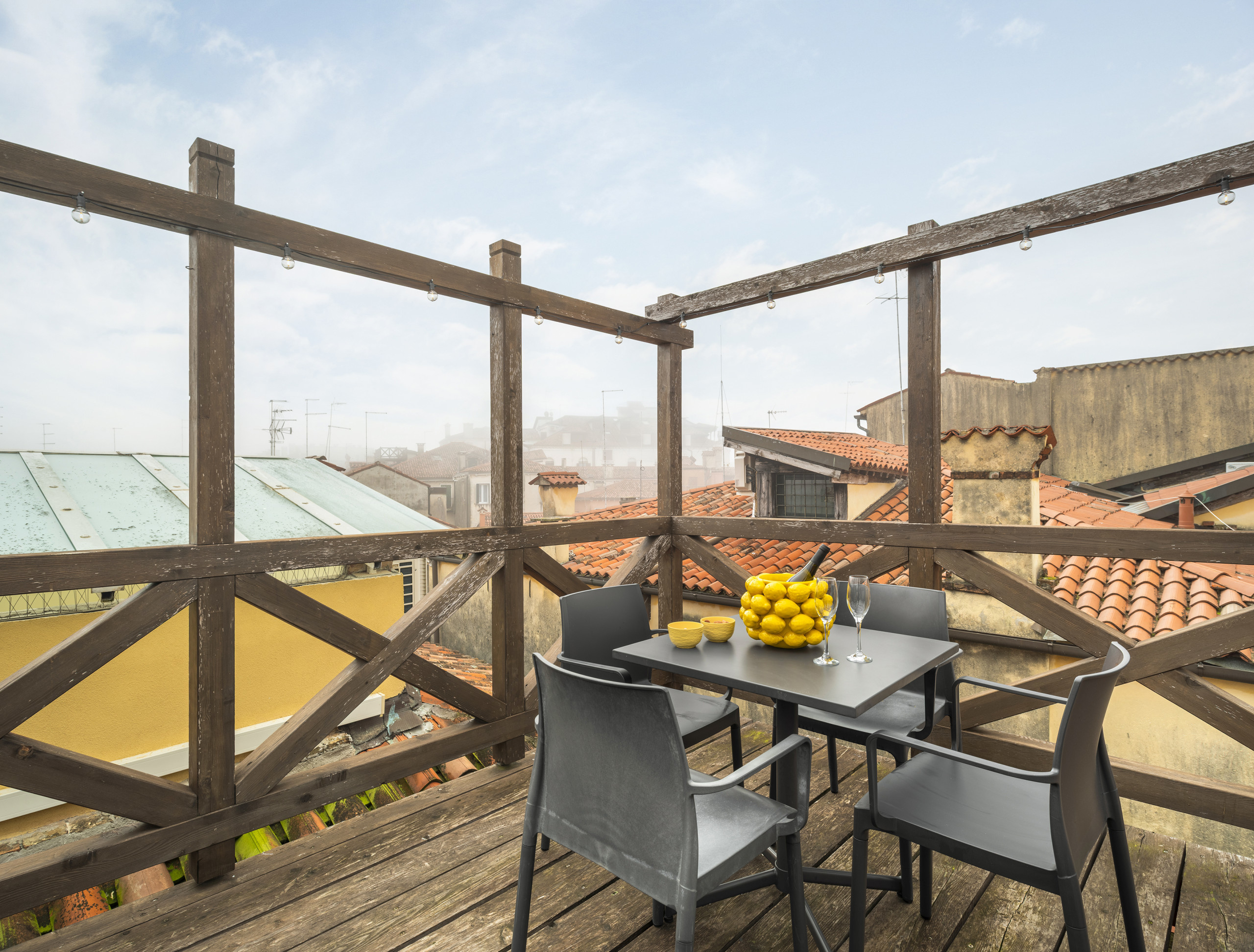 Scopri il fascino di Venezia soggiornando in questo elegante appartamento duplex, situato all’interno di un splendido condominio recentemente rinnovato e dotato di ascensore, una comodità rara in città. L’appartamento si sviluppa su due livelli. Al primo piano troverai un accogliente soggiorno con divano letto, una cucina completamente attrezzata e un bagno. Salendo al piano superiore, ti attende una raffinata camera matrimoniale con toilette e una vasca idromassaggio in camera, ideale per regalarti momenti di puro relax. A rendere l’esperienza davvero unica è la magnifica altana, da cui potrai godere di una vista mozzafiato sui tetti di Venezia-