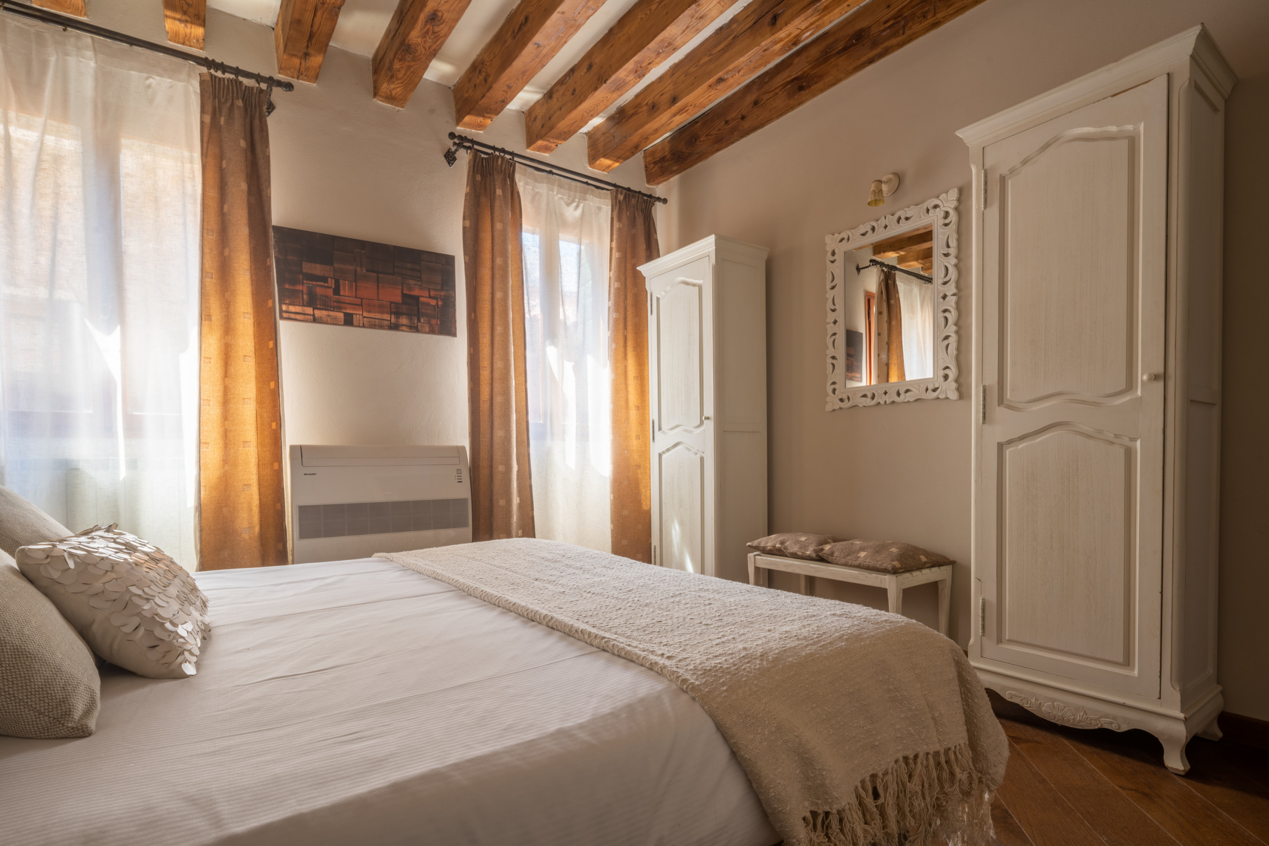 Questo luminoso appartamento, arredato con mobili di classe, dai colori caldi del legno e con le travi a vista farà da cornice alla vostra splendida vacanza a Venezia.