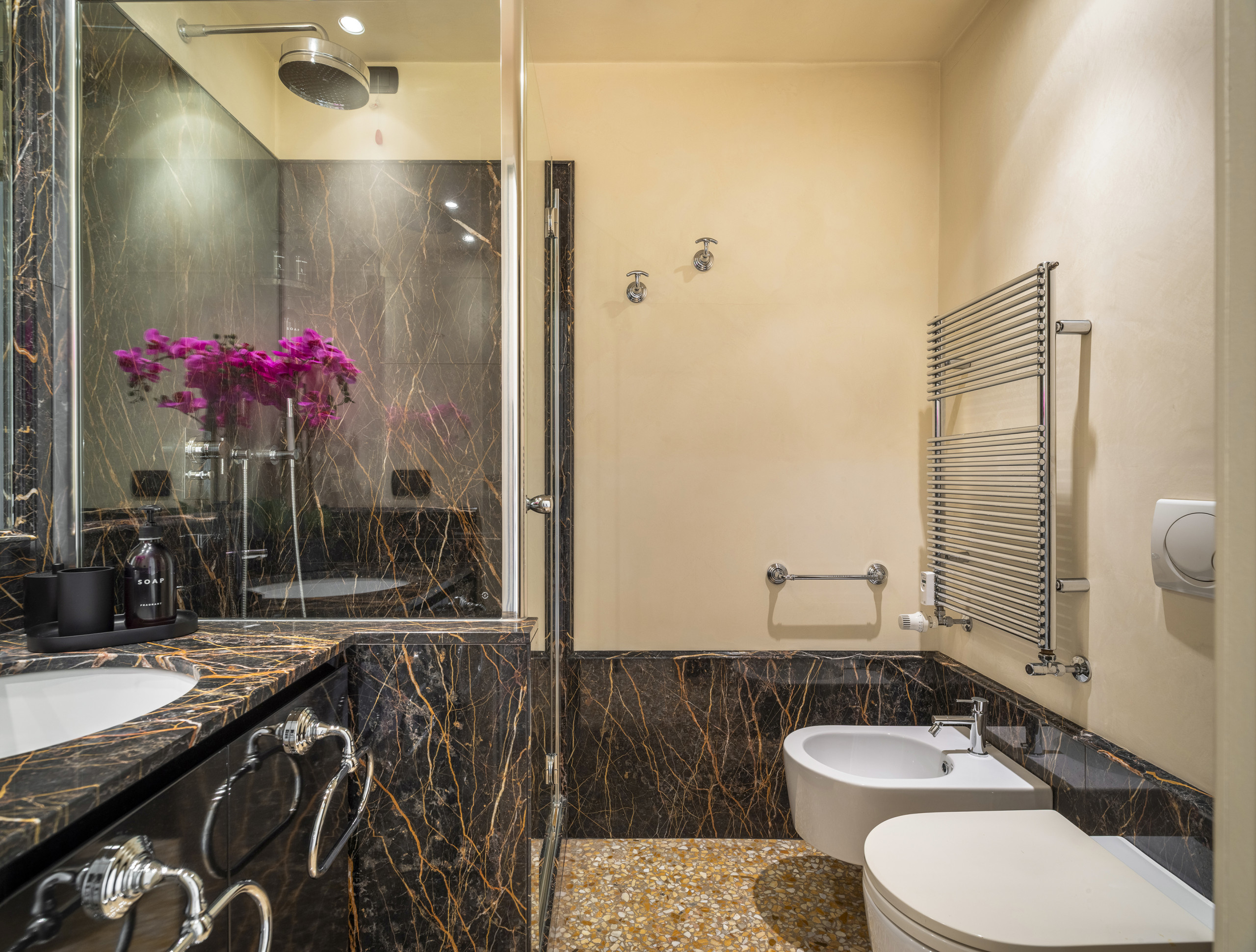 La vicinanza al Ponte dell’Accademia permette di raggiungere comodamente i principali musei e le meraviglie di Venezia, mentre la fermata del vaporetto “Ca’ Rezzonico”, a breve distanza dall’appartamento, collega in circa 10 minuti con Piazza San Marco.