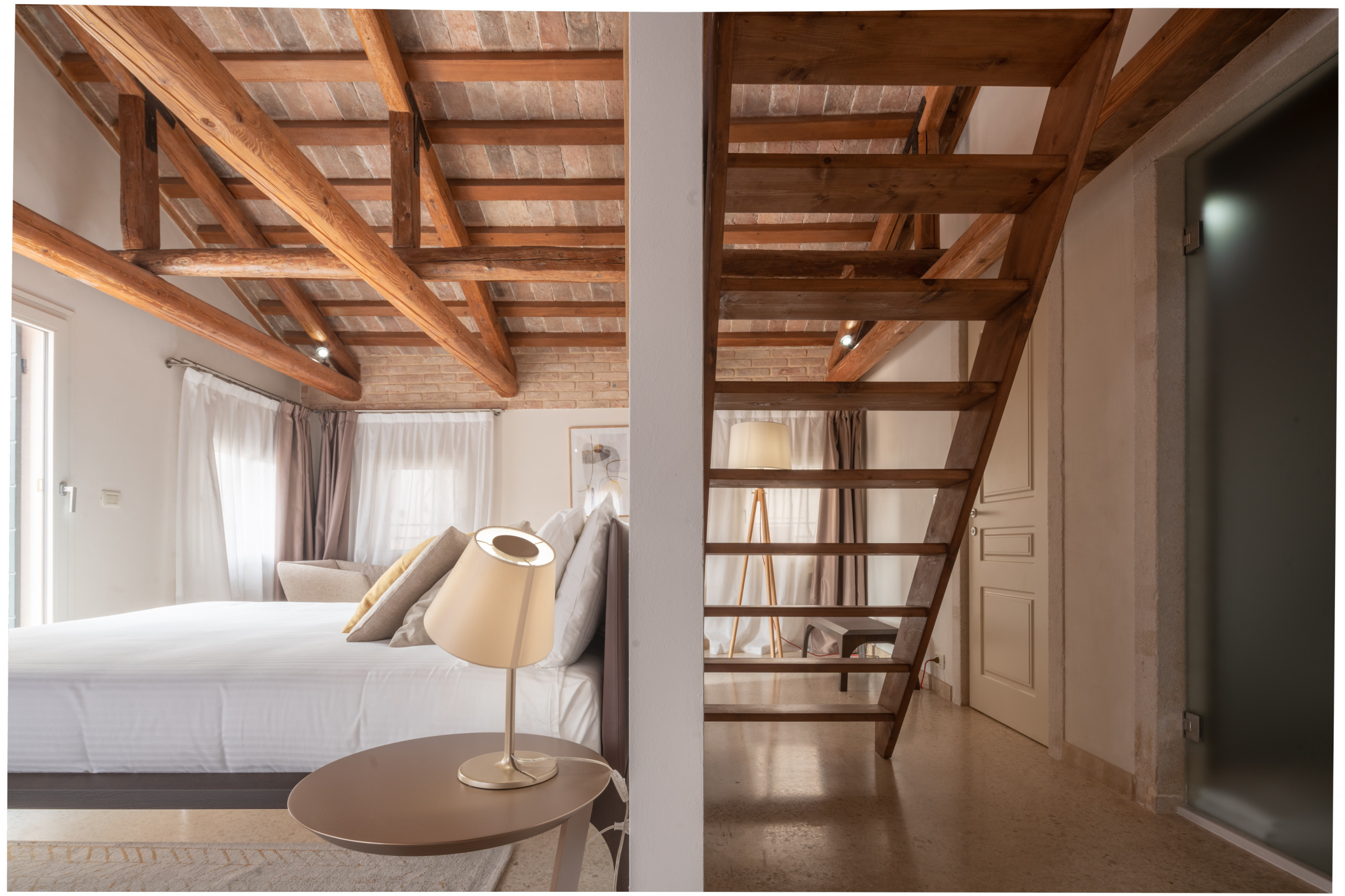 Questo splendido attico con altana abitabile offre un’esperienza autentica e raffinata nel cuore di Venezia. La proprietà dispone di una camera da letto matrimoniale con bagno privato completo di doccia, un luminoso soggiorno con divano letto e una cucina open space completamente attrezzata, perfetta per chi desidera vivere la città con tutti i comfort di casa. A completare gli spazi interni, è presente anche una seconda toilette di servizio.