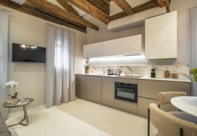 Elegante appartamento appena restaurato a due passi da Campo Santa Maria Formosa. Design moderno e raffinato, con camera matrimoniale e bagno ensuite, vasca da bagno in camera e camino per un’atmosfera unica e romantica. Completa la casa un secondo bagno completo.