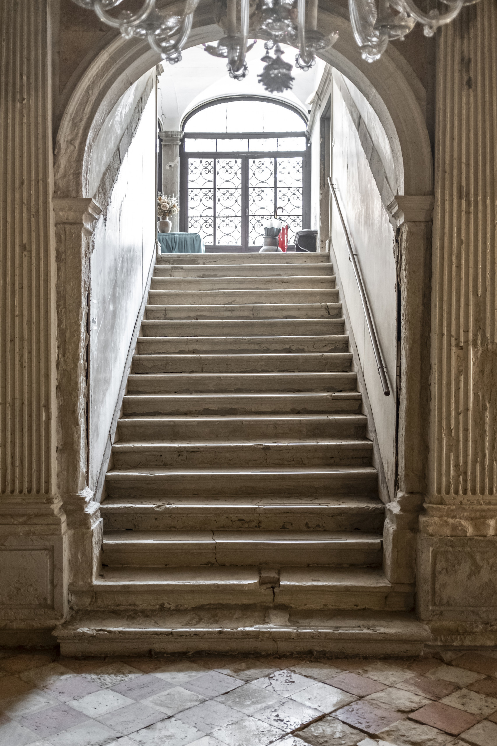 Palazzo Gabrielli Dolfin, con il suo imponente ingresso, ospita questo spazioso e affascinante appartamento al quarto piano che offre una vista mozzafiato sui tetti della città e sul canale sottostante.