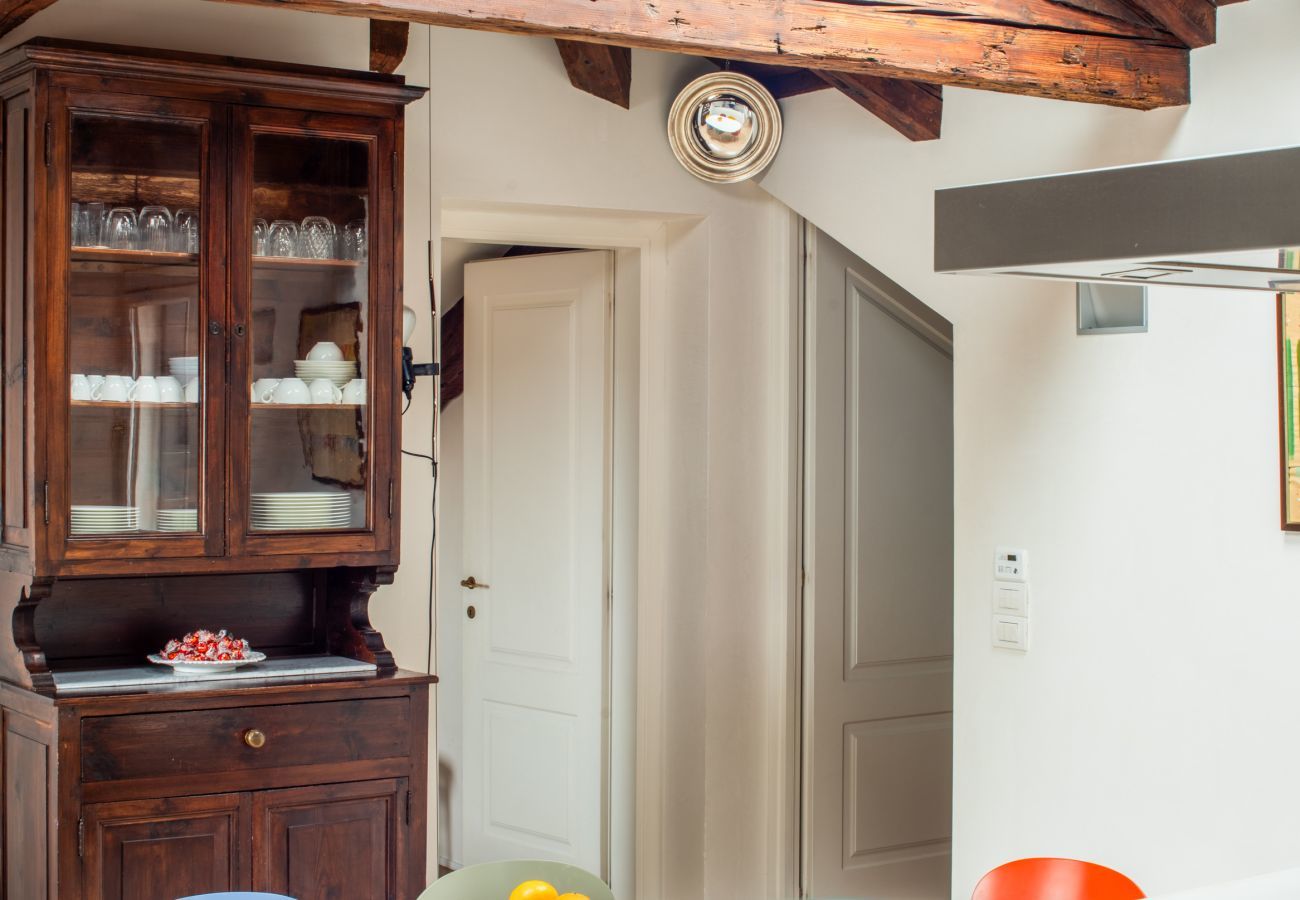 Di recente restauro, con travi di legno a vista e mobilio di pregio, l’alloggio dispone di un confortevole soggiorno, bagno ospiti, cucina abitabile completamente attrezzata con tutti gli elettrodomestici, una ampia camera matrimoniale con bagno ensuite e camera con due letti singoli con bagno ensuite.