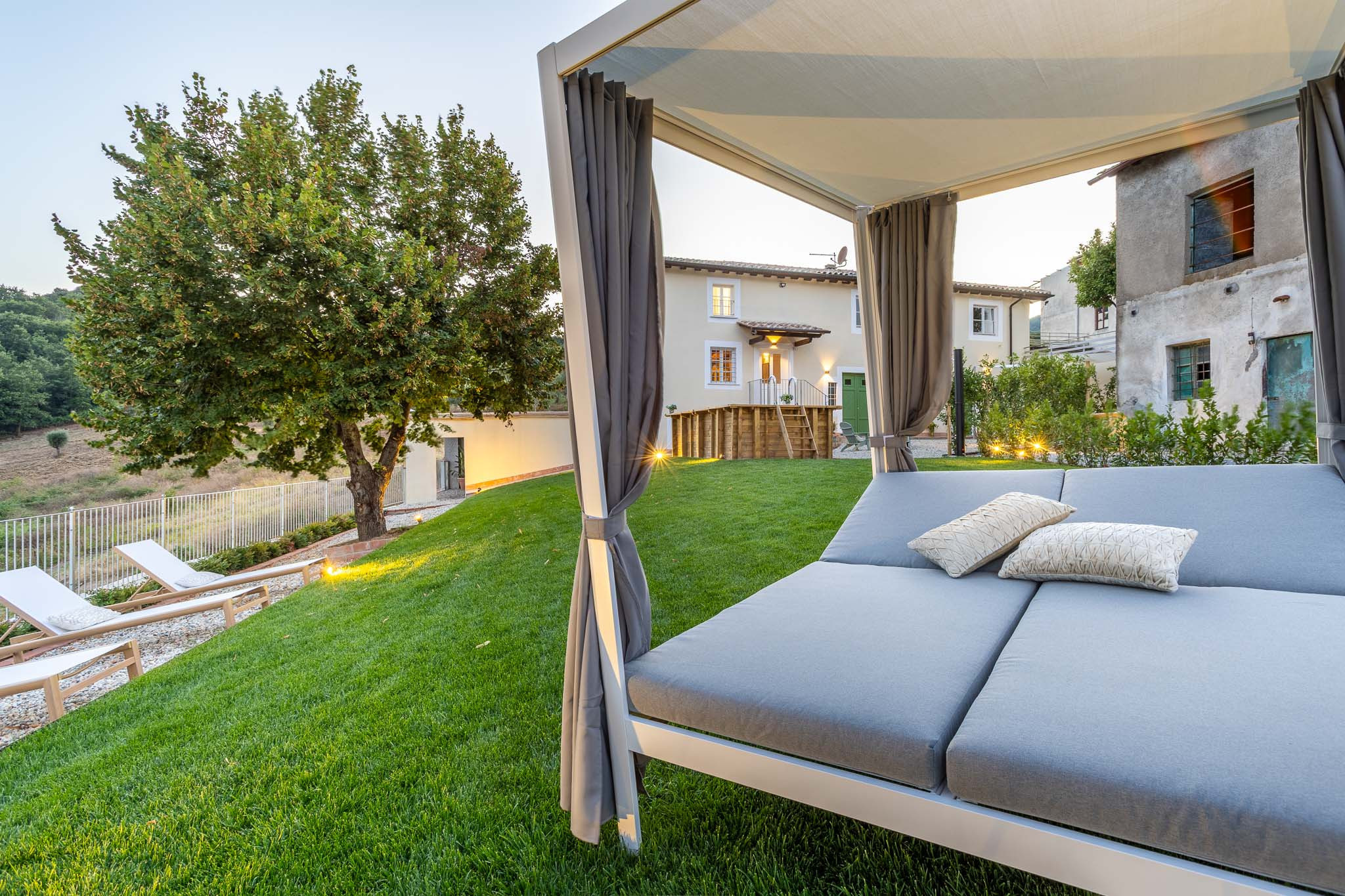 Villa Podere Falcione is ideally located: just a few minutes’ drive takes you to the historic walled city of Lucca, while the villa also serves as a perfect base for exploring the treasures of Tuscany—from the vineyards and olive groves of the Lucchese hills to Pisa, Florence, and the golden beaches of Versilia.