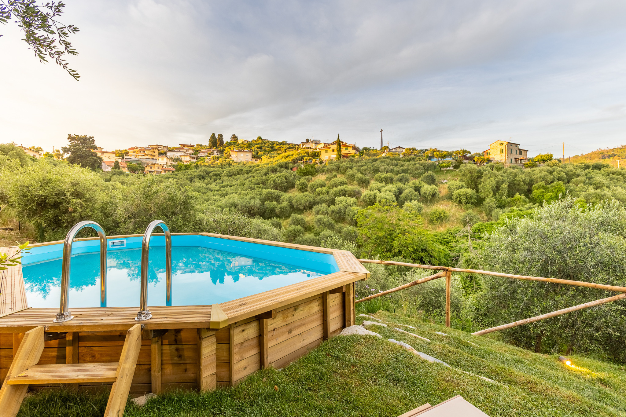All'esterno, la villa offre un giardino privato di 1000 metri quadrati con arredi da giardino, barbecue e una terrazza che permettono di godere appieno degli spazi open air. La piscina privata da 4x8 metri è l'ideale per rinfrescarsi e rilassarsi nelle calde giornate estive.