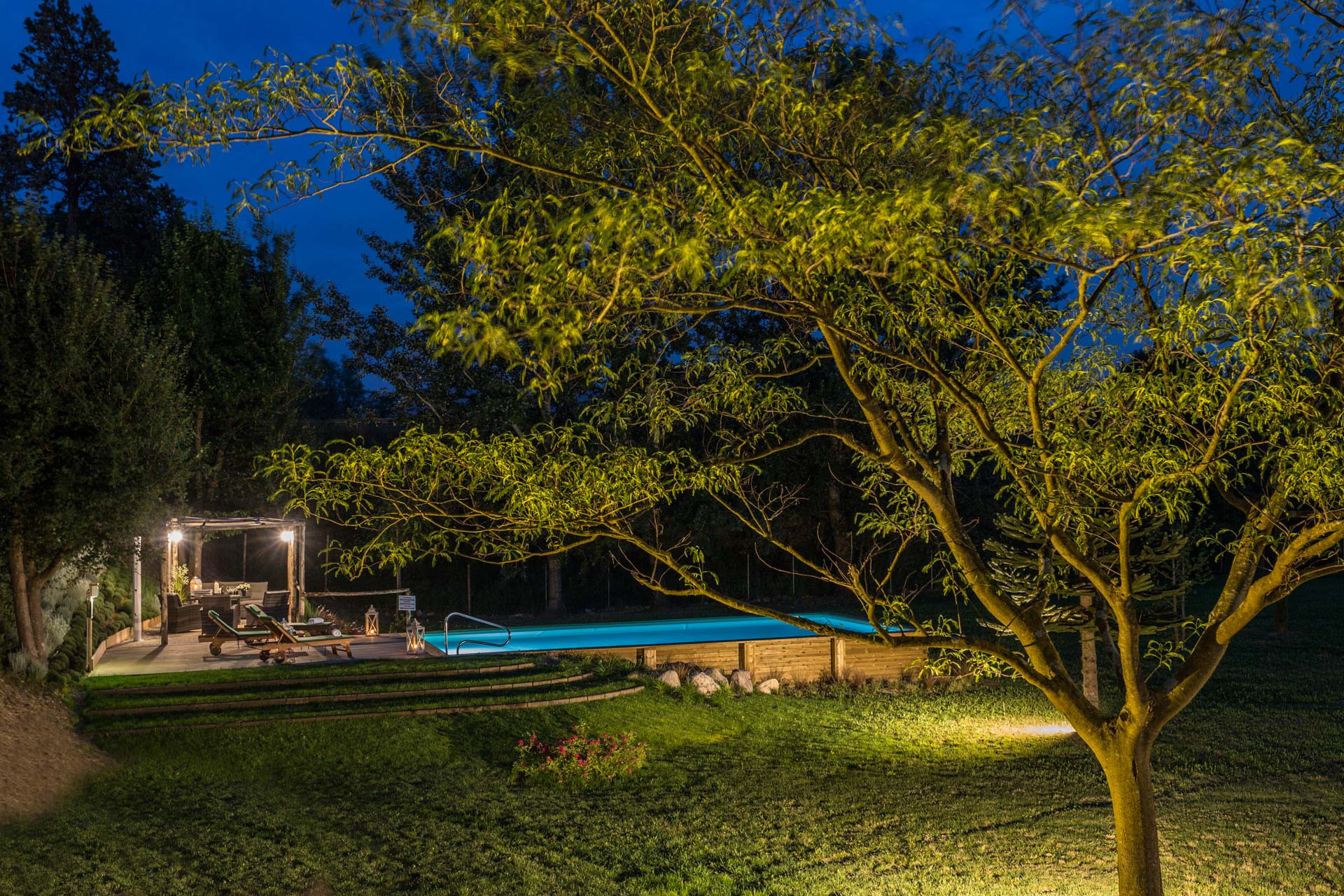 L'agriturismo dispone di una splendida piscina con una splendida vista sul giardino e di una zona solarium. La piscina, 10 x 5 metri, si trova di fronte alla casa ed è circondata da un'area relax attrezzata con gazebo. Assolutamente adatto per notti romantiche.