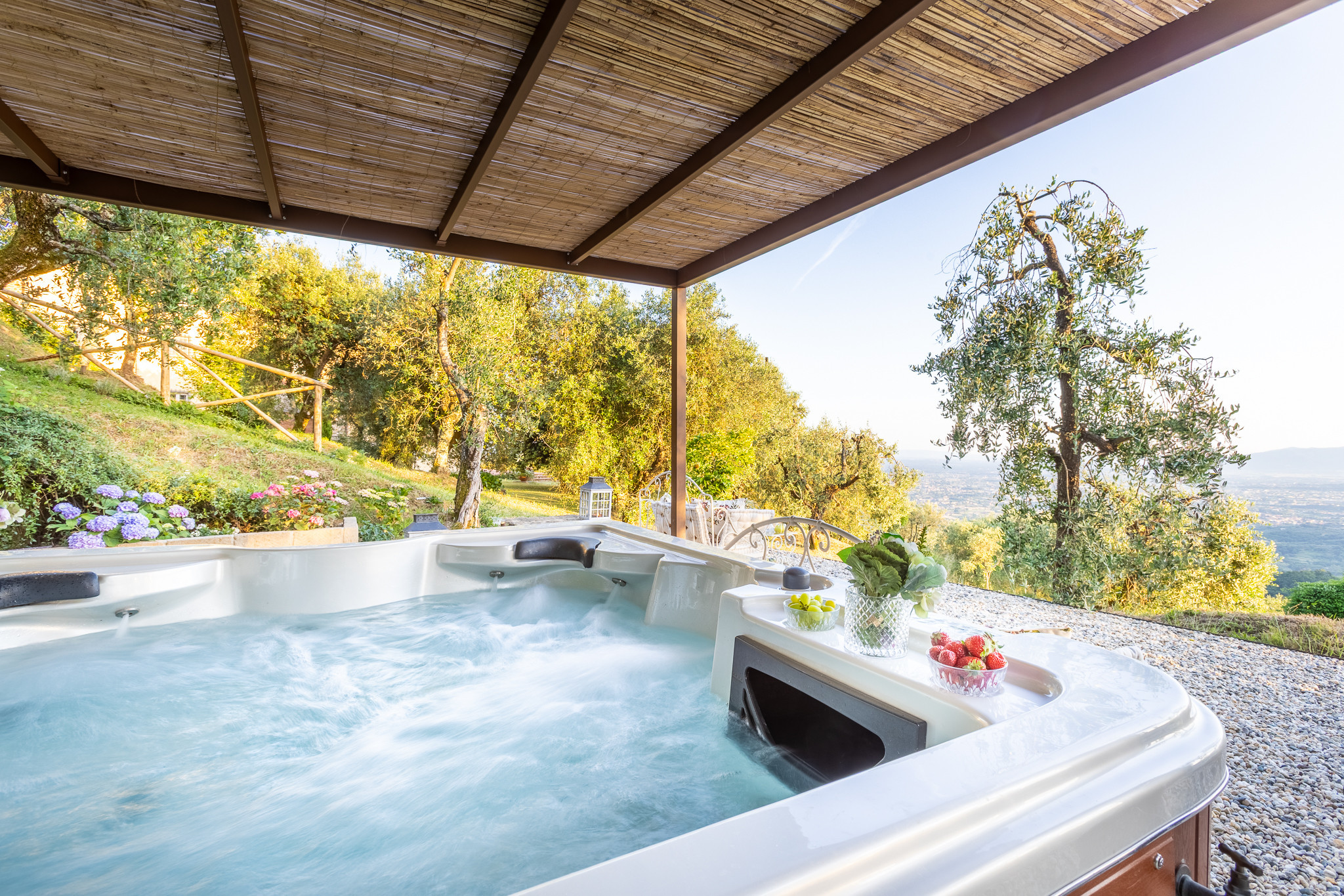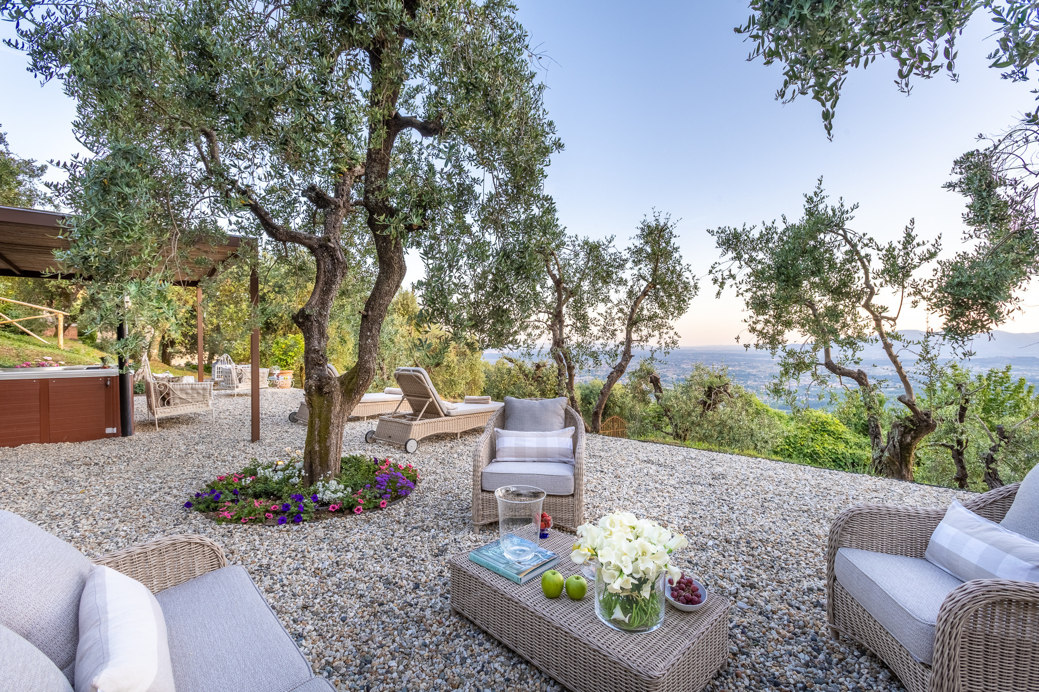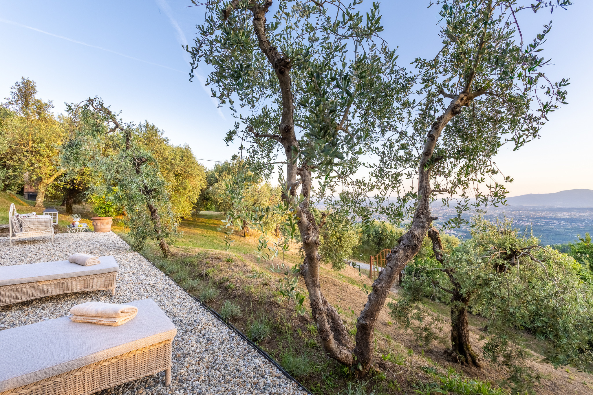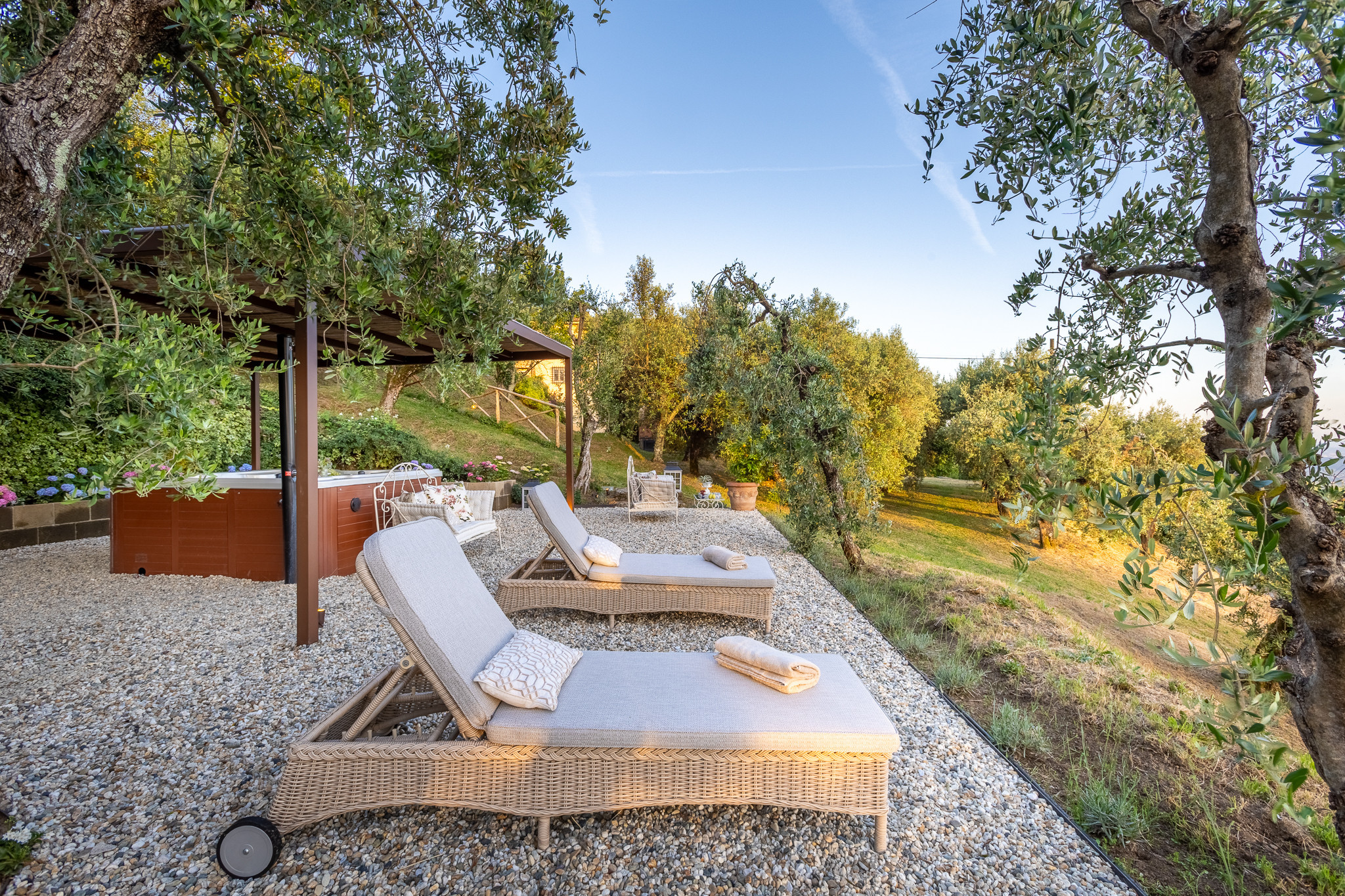 Just beyond, among the silvery olive groves, awaits a serene leisure area designed for pure relaxation. Slip into the bubbling jacuzzi pool (not heated) as the sun dips below the horizon, setting the valley ablaze in hues of amber and rose. Sink into designer outdoor loungers and let time slow to the rhythm of the crickets and the soft Tuscan breeze.