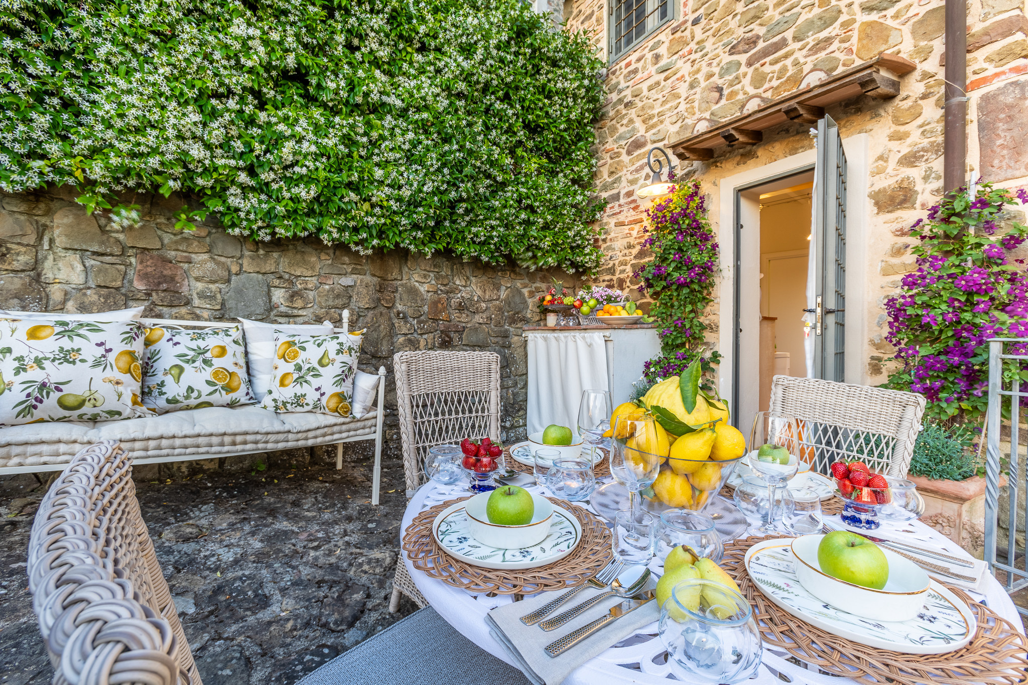 The farmhouse features a charming, fully equipped apartment with a private outdoor space, offering both comfort and authenticity. But the true jewel of this property lies just steps away — a panoramic terrace that commands sweeping views over the rolling Tuscan countryside. From here, gaze upon the iconic patchwork of vineyards and cypress-lined roads, with the historic towns of Montecatini Terme, Lucca, and Pistoia unfolding beneath you like a Renaissance painting. As the golden light of dusk descends, this outdoor dining area becomes a stage for unforgettable meals, candlelit conversations, and starlit toasts.