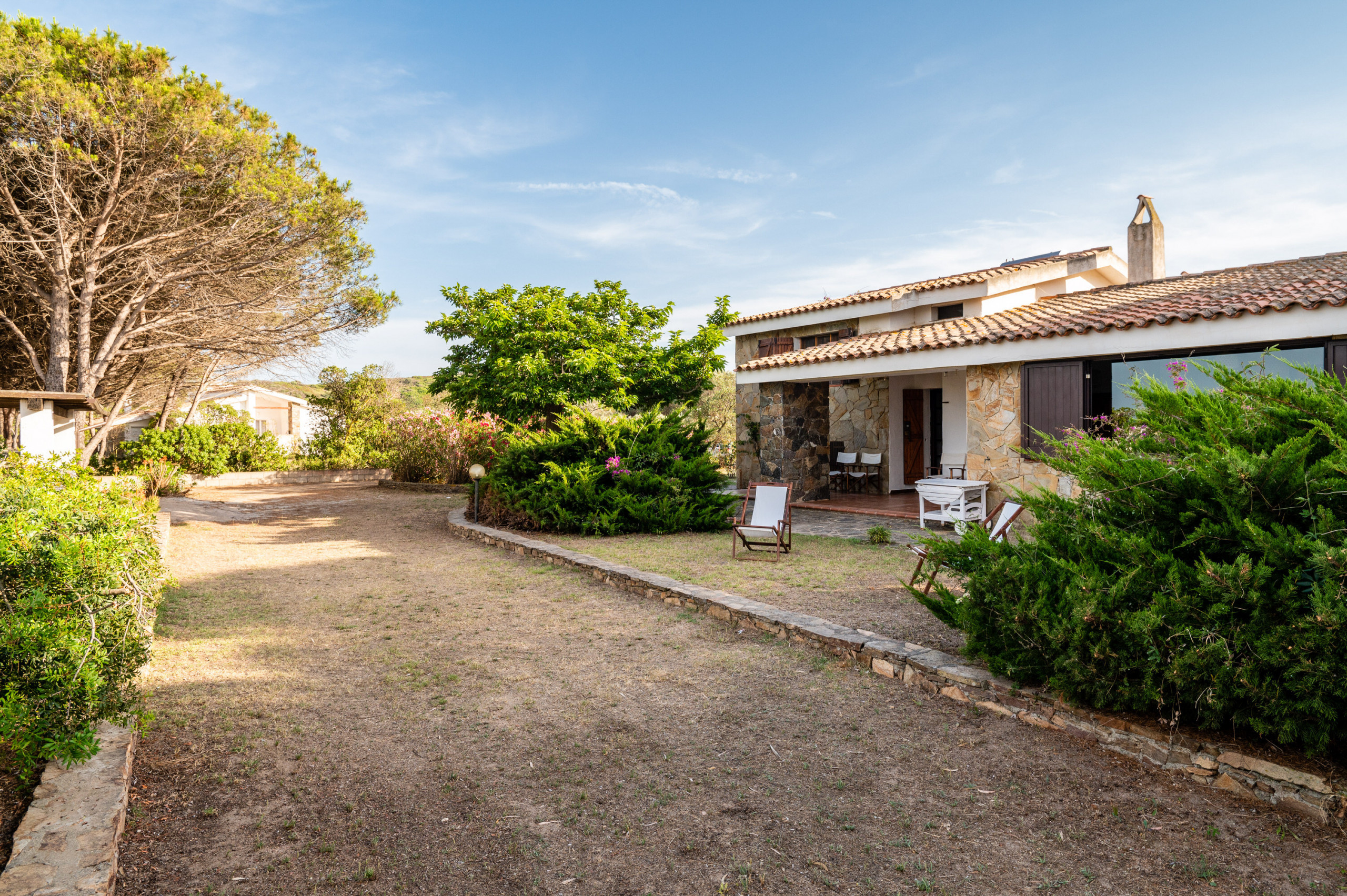 Gli esterni rappresentano uno dei principali punti di forza della proprietà. La villa dispone di una splendida piscina privata a fagiolo (25 m²) con vista panoramica sulle isole del golfo, circondata da un patio arredato e zone relax. La veranda principale, coperta e ventilata, è arredata con tavolo da pranzo e salotto esterno: un ambiente ideale per colazioni vista mare, aperitivi al tramonto e momenti di relax. Il giardino su quattro lati ospita un’area barbecue con pergola e tavolo in granito. Una scala esterna conduce al tetto panoramico, perfetto per godersi la brezza serale o ammirare l’alba su Tavolara. A disposizione degli ospiti due posti auto coperti all’ingresso della proprietà.