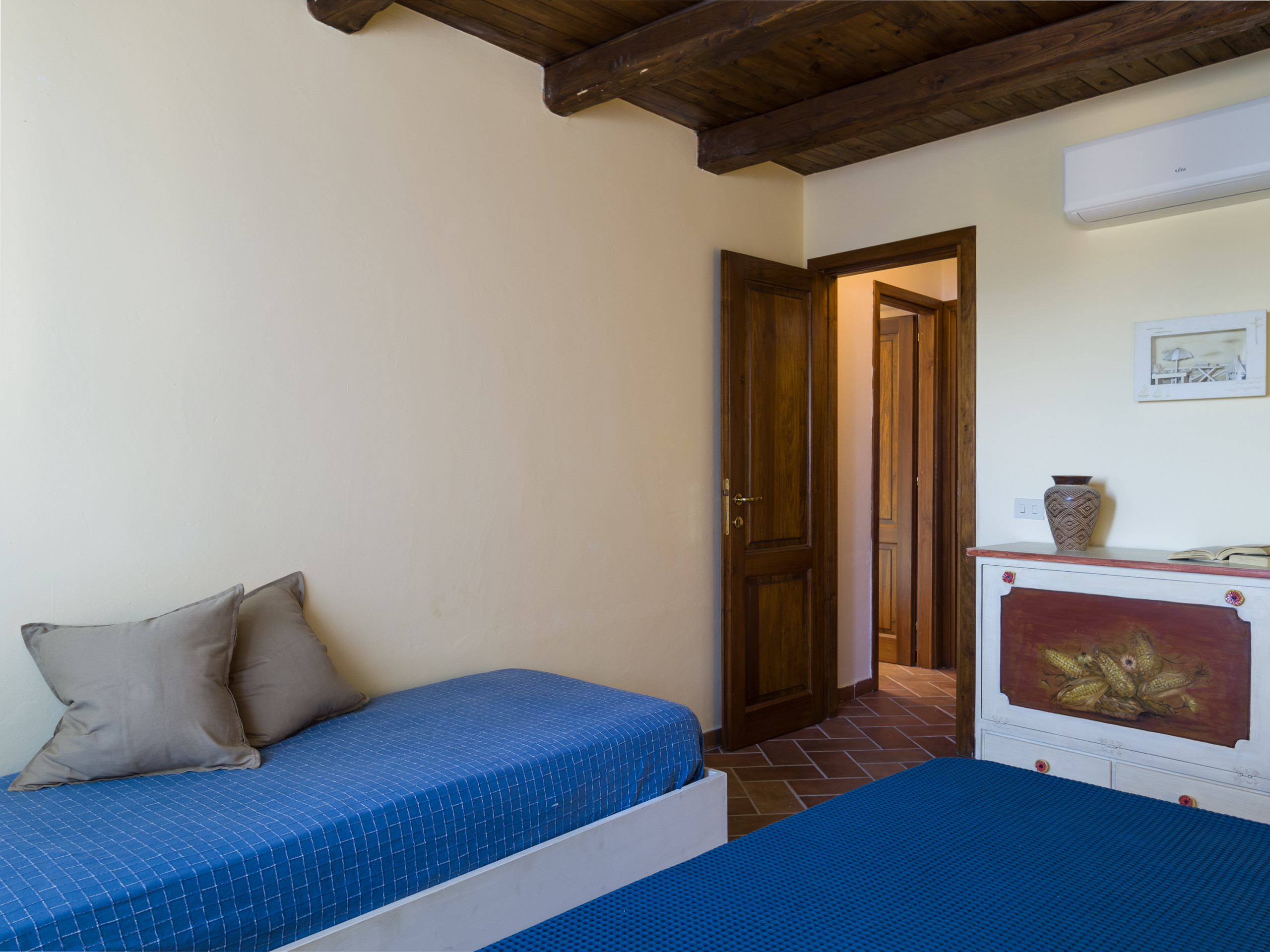 Distribuita su due livelli, questa proprietà è una confortevole villa immersa nel verde progettata per accogliere fino a otto ospiti. La zona notte è composta da due camere matrimoniali, una camera con due letti singoli e un divano letto matrimoniale situato nel soggiorno. Tre bagni, di cui uno con vasca, offrono praticità e comfort per tutti gli ospiti. La cucina, completamente attrezzata con piano cottura a gas, frigorifero, congelatore, lavastoviglie, macchina da caffè, bollitore e tostapane, si affianca a un soggiorno luminoso arredato in stile mediterraneo.
