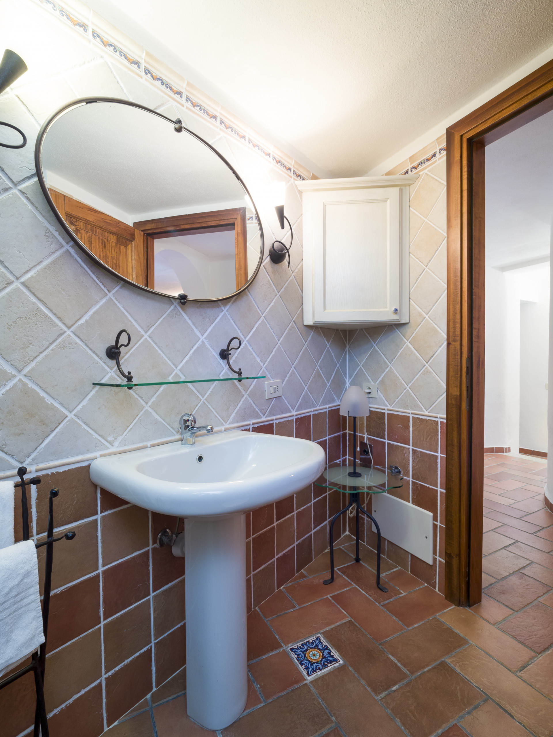 Gli esterni di Villa Calyra includono un ampio giardino privato con area barbecue, una terrazza arredata e una splendida piscina con zona poco profonda sicura per i bambini, caratteristica che rende la proprietà una perfetta villa per famiglie. Gli spazi all’aperto sono pensati per vivere momenti di convivialità e relax immersi nella quiete della campagna sarda, valorizzando appieno la natura circostante e offrendo una vera villa con giardino privato.