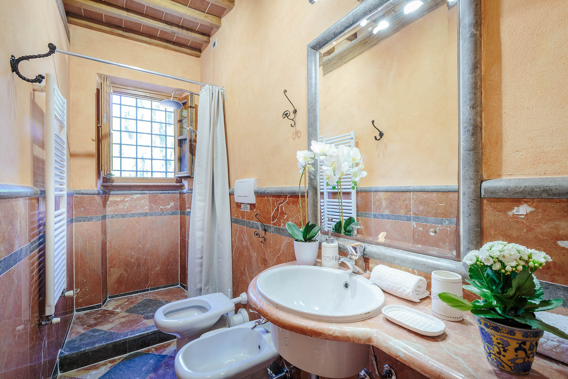 We are 7 couples, long time friends who dreamed of staying in an Italian villa as we toured beautiful Italy. This was a perfect "home base" from which we all did day trips to the surrounding towns and villages such as Lucca, Volterra, Florence, Lerici to name a few. Regarding the villa itself, the kitchen is large, with 2 refrigeratiors and 2 dishwashers. The bedrooms did not all have ensuite bathrooms but each bedroom certainly had a bathroom nearby. There is plenty of lovely outdoor space to enjoy breakfastshappy hours. The pool is lovely although not heated. The manager is a call away and responded when we told her of an ant problem we were having. I highly recommend this villa if you are a group looking for a fabulous Italian getaway.