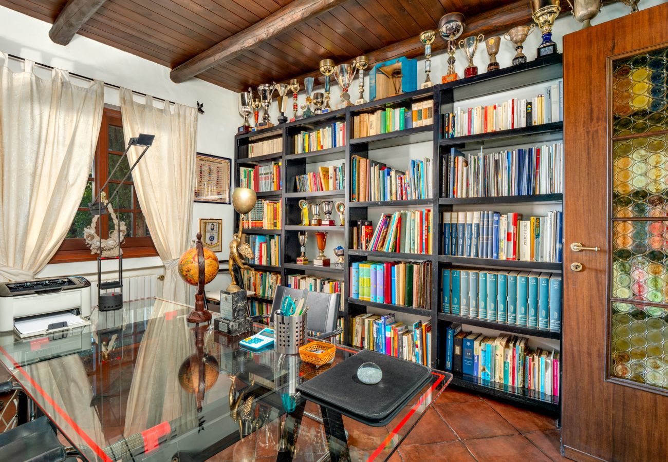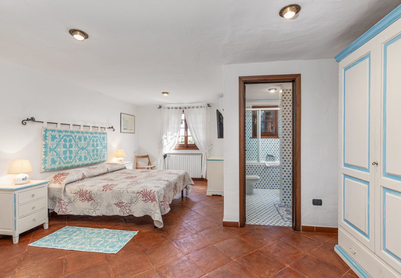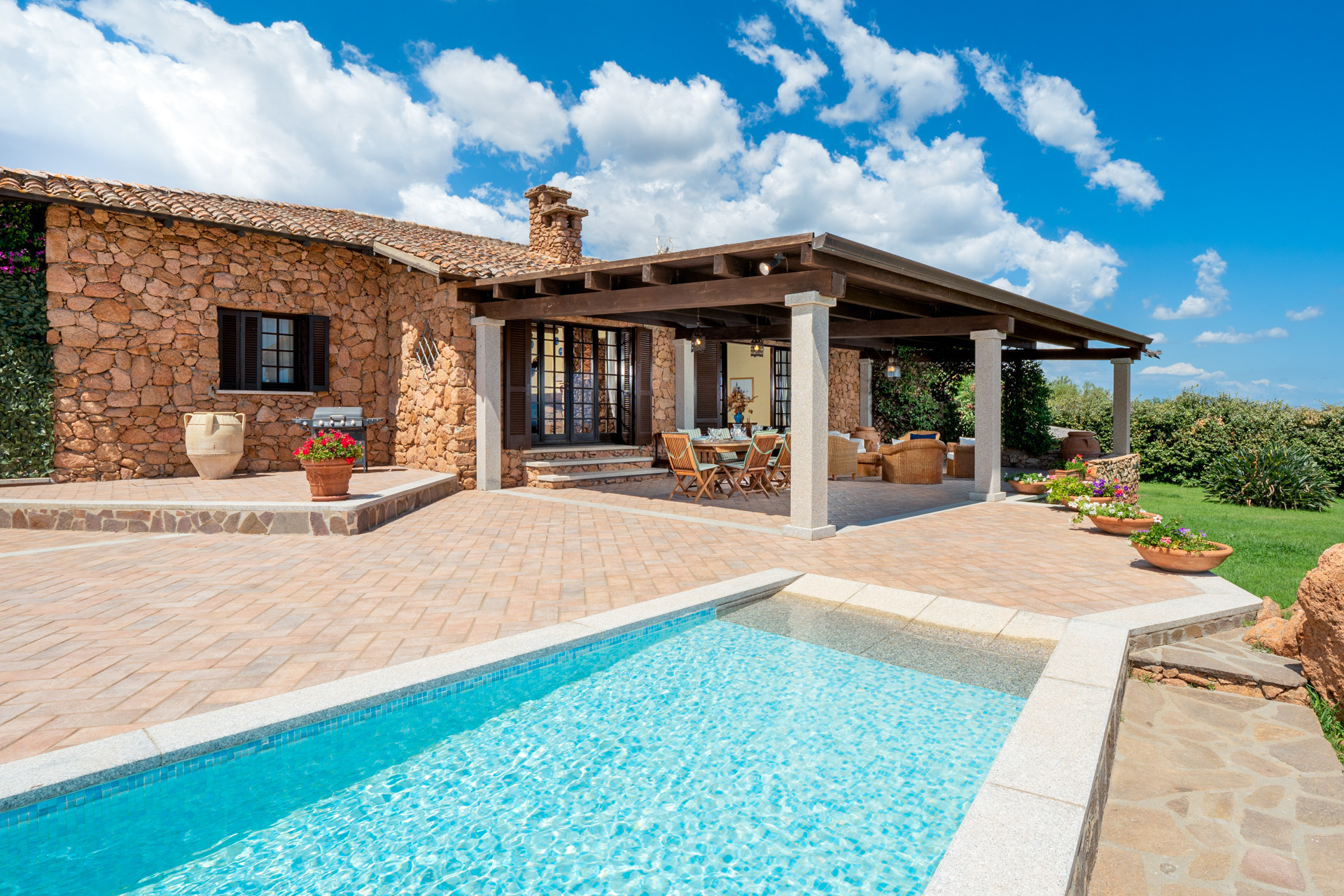 La grande veranda coperta, arredata con tavolo da pranzo e zona relax, offre una vista magnifica sulle isole e sul paesaggio circostante. La piscina a sfioro, affacciata sul mare, rappresenta il fulcro della proprietà e crea un’atmosfera di totale immersione nella natura. Il giardino, caratterizzato da essenze mediterranee, circonda la proprietà e garantisce privacy e tranquillità.