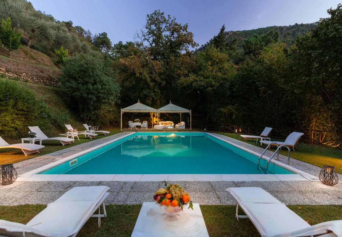 Step outside, and you are greeted by sweeping views of the lush landscape, the rolling hills stretching into the horizon, crowned by the ancient city of Lucca, just a short drive away. In the heart of the home’s garden lies a private pool, shimmering like a jewel under the Tuscan sun. Here, you can unwind in peaceful solitude, or share moments of joy with loved ones as you gaze upon the magnificent views, perhaps with a glass of local wine in hand.
