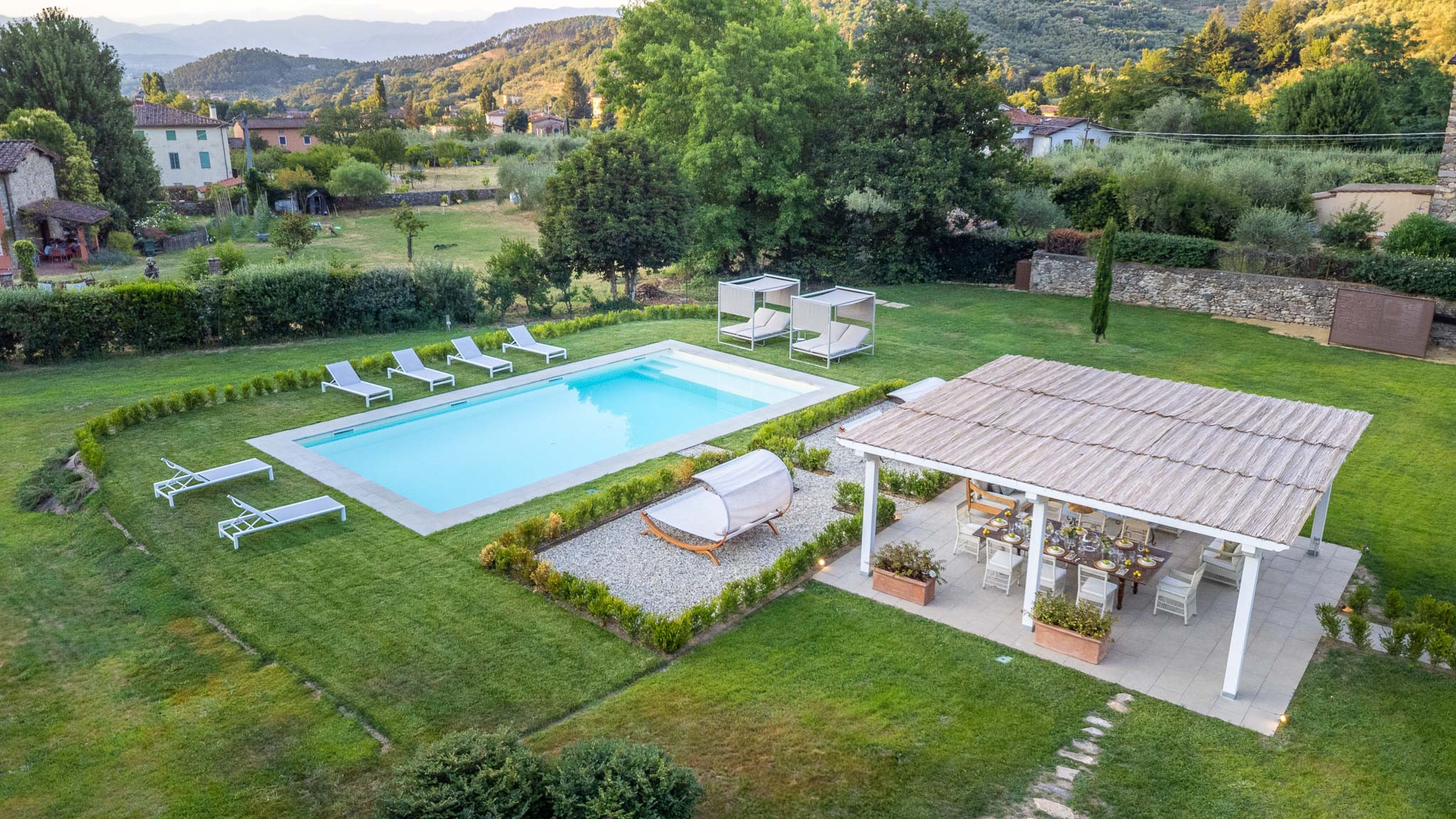 Beyond the serenity of your private oasis, Villa Brera offers the perfect launching pad to explore the wonders of Tuscany. The historic walled city of Lucca is just 10 minutes away, while Pisa, Florence, and the enchanting coastlines of Cinque Terre are all within easy reach. Surrounding the villa are quaint villages, boutique wineries, rustic trattorias, and centuries-old farms—each offering an authentic taste of Tuscan life.