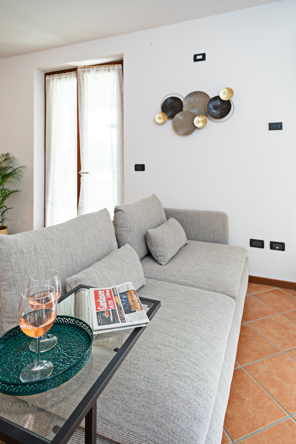 L’appartamento Giarole, interamente situato al pian terreno, dispone di un’ampia camera con due letti singoli accostabili con guardaroba, una camera matrimoniale con ulteriore letto singolo convertibile in matrimoniale, piccolo bagno con doccia, bagno principale finestrato con angolo lavanderia con lavatrice, box doccia, doppio lavabo. La spaziosa cucina affaccia sulla terrazza laterale attrezzata con tavolo e sedie e dispone di moderna cucina con lavastoviglie, piano cottura ad induzione, forno a microonde, grande frigorifero con freezer, bancone all’americana per la colazione, coffee corner con macchina da caffè tedesca e macchina da caffè con cialde. La zona giorno arredata con divano, poltroncine, tv satellitare e grande tavolo da pranzo, si apre sulla terrazza coperta con zona lounge e offre una piacevole vista sul giardino e sulla piscina.