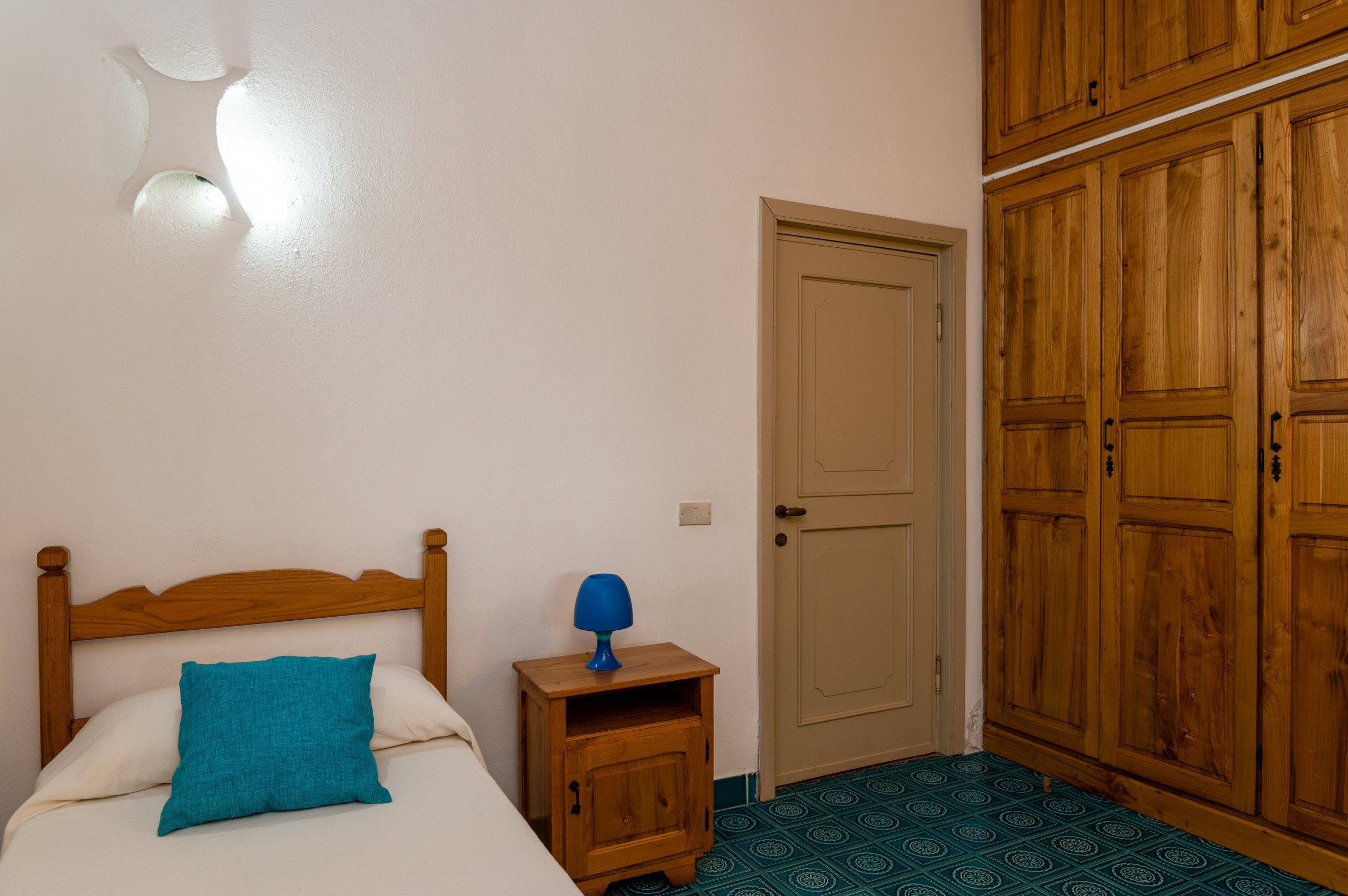 L’abitazione è circondata da un giardino con essenze mediterranee, parzialmente condiviso con una seconda unità. La veranda, orientata verso la costa, è uno degli spazi più vissuti della casa, mentre il cortile interno offre due posti auto riservati.
