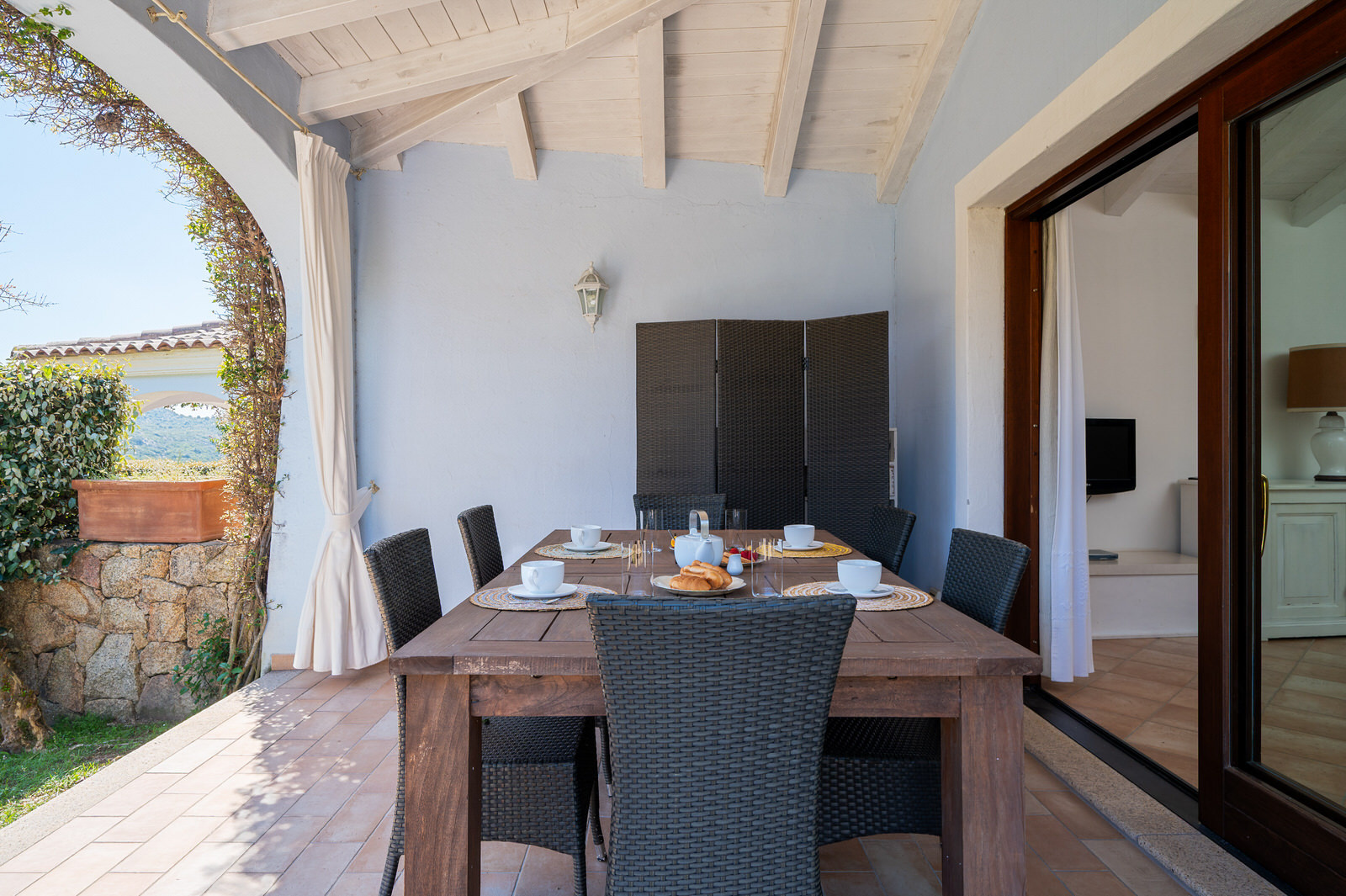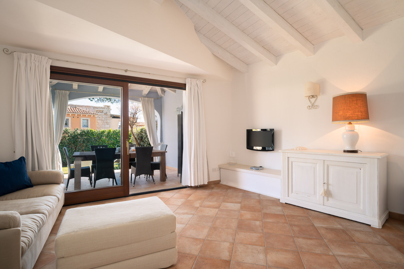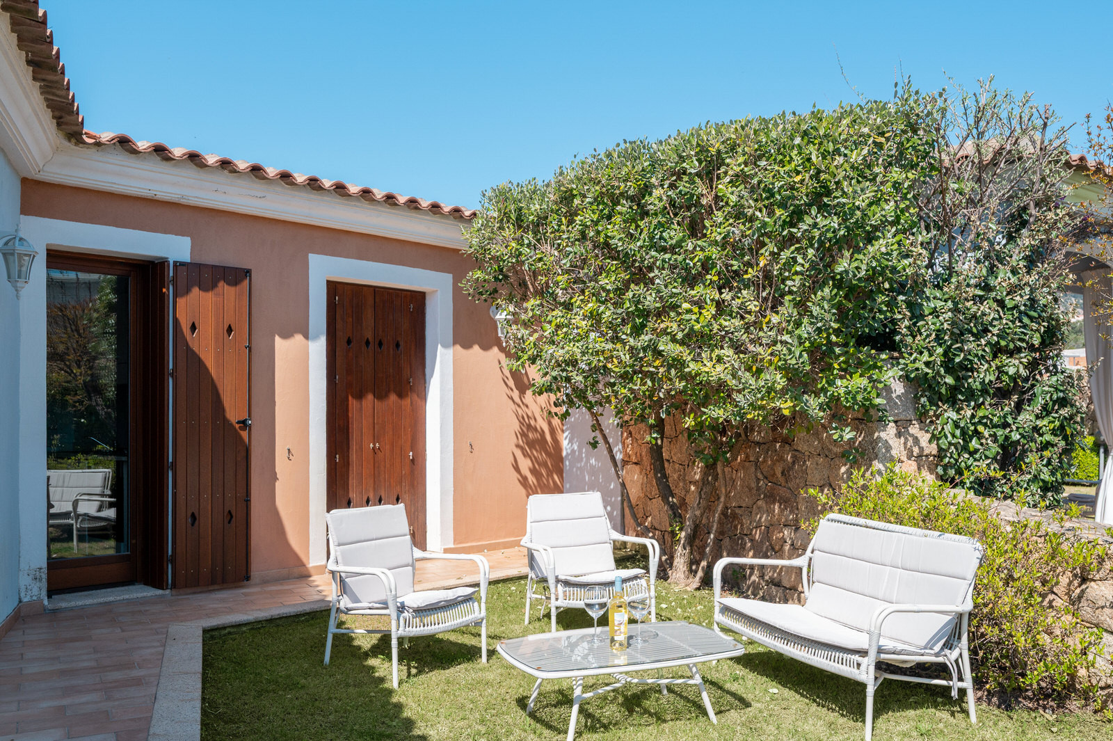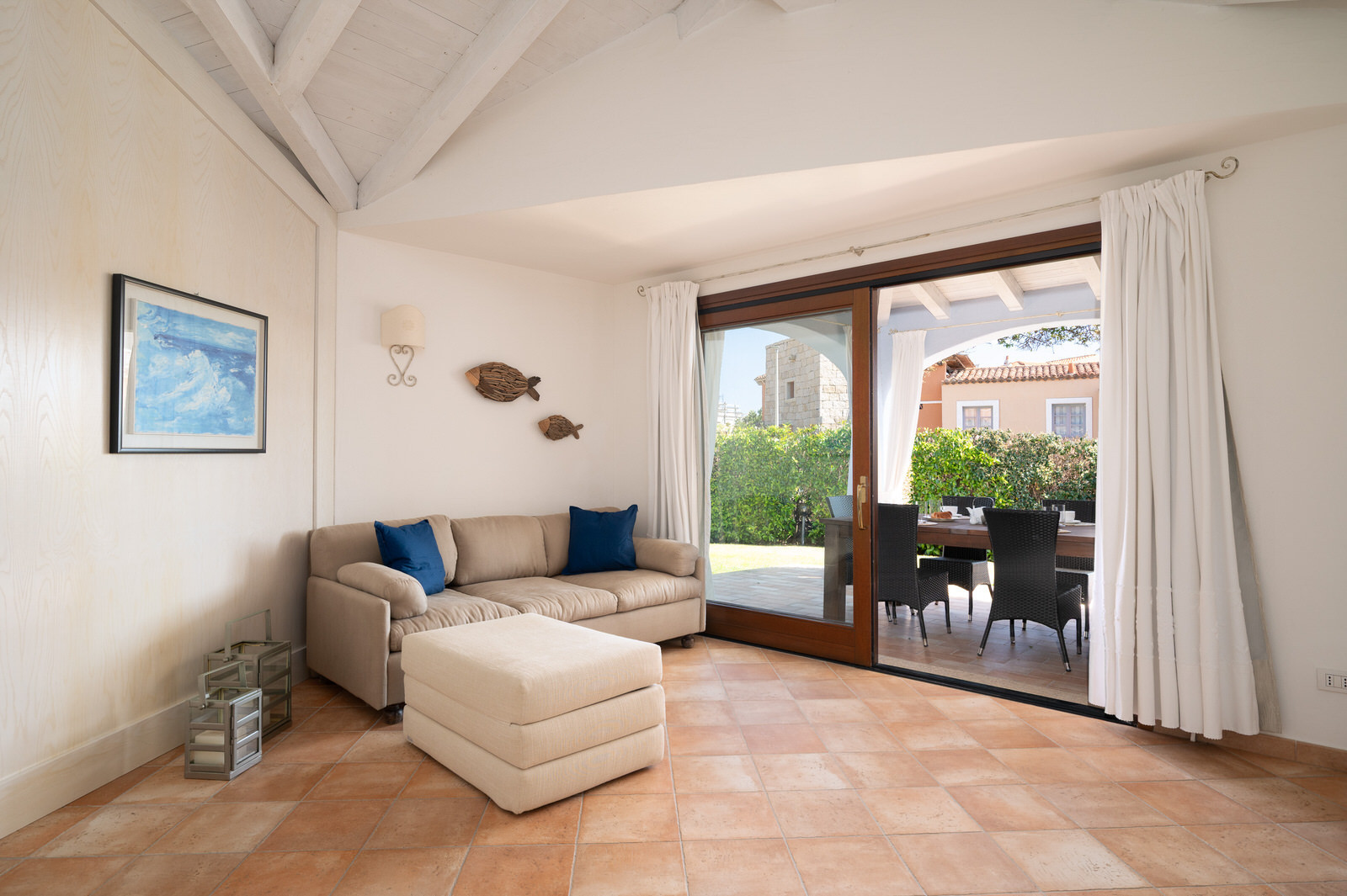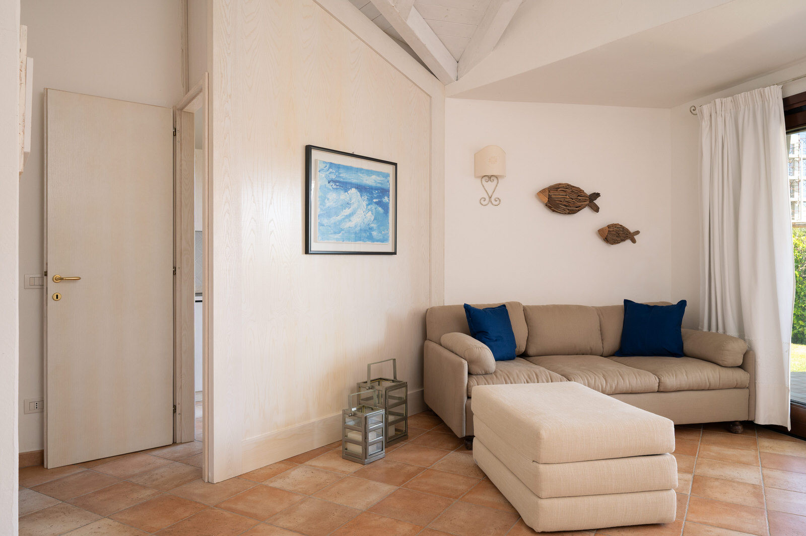 Leucia Cervo ist eine Ferienvilla an der Costa Smeralda mit stilvoll gestalteten Innenräumen. Mit einer Fläche von etwa 80 m² bietet sie helle, geschmackvoll eingerichtete Räume, in denen weiße Möbel und helle Farbtöne eine mediterrane Atmosphäre schaffen. Der Wohnbereich öffnet sich zum Garten und bietet eine entspannte Umgebung mit Blick ins Grüne. Die Villa verfügt über zwei Schlafzimmer, eines davon mit eigenem Bad, eine vollständig ausgestattete separate Küche sowie gepflegte Außenbereiche mit möblierter Terrasse und privatem Garten.