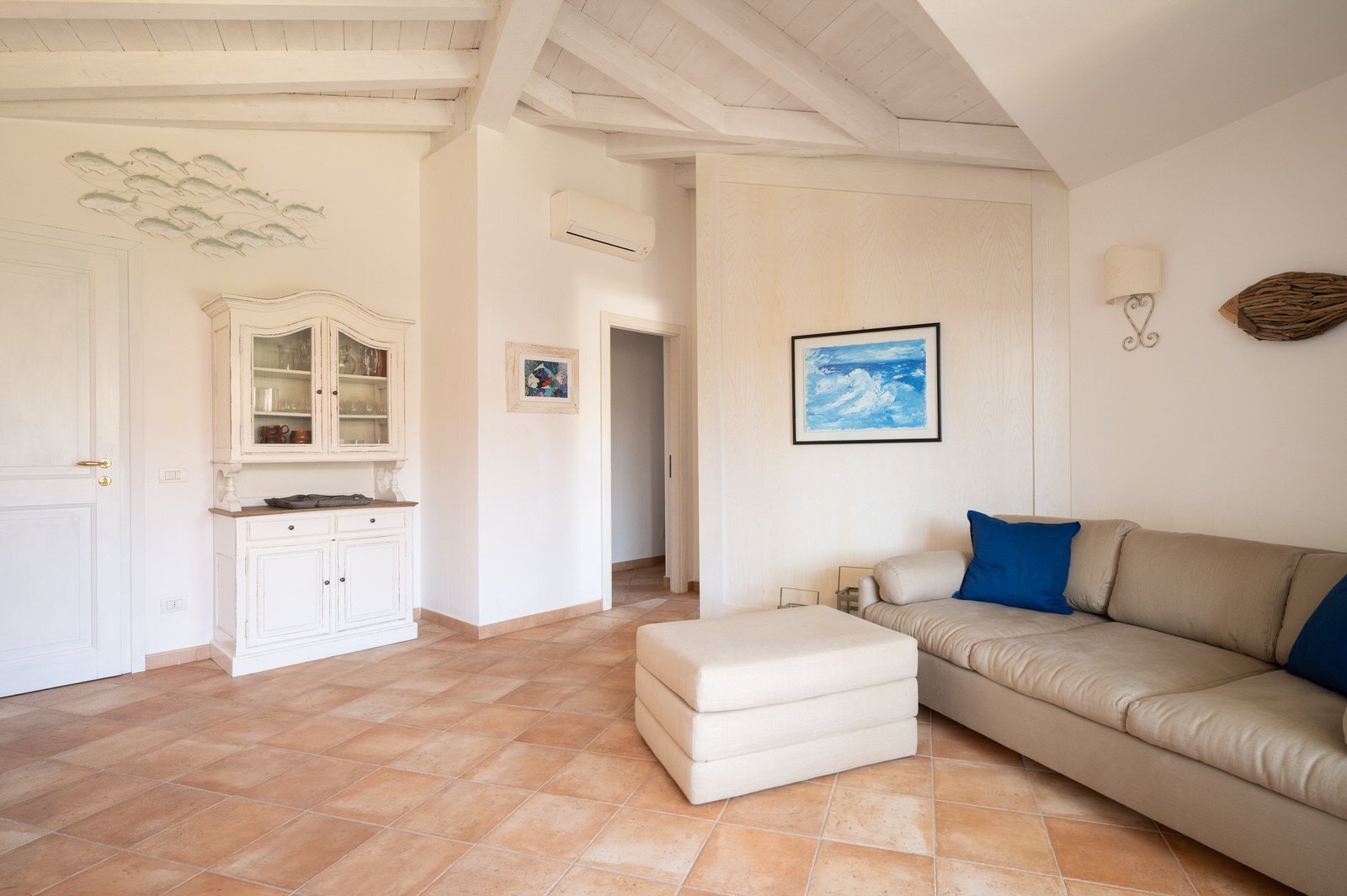 Akria Cervo ist eine Ferienvilla an der Costa Smeralda mit einer Fläche von etwa 80 m², gestaltet für komfortable und funktionale Räume. Die Innenbereiche sind hell und geschmackvoll eingerichtet, wobei weiße Möbel und neutrale Farbtöne eine perfekte Harmonie mit dem natürlichen Licht und der mediterranen Atmosphäre schaffen.
