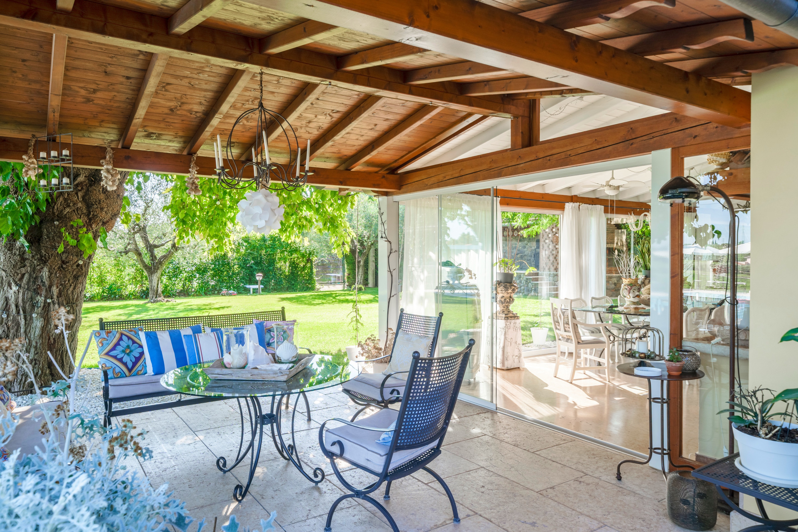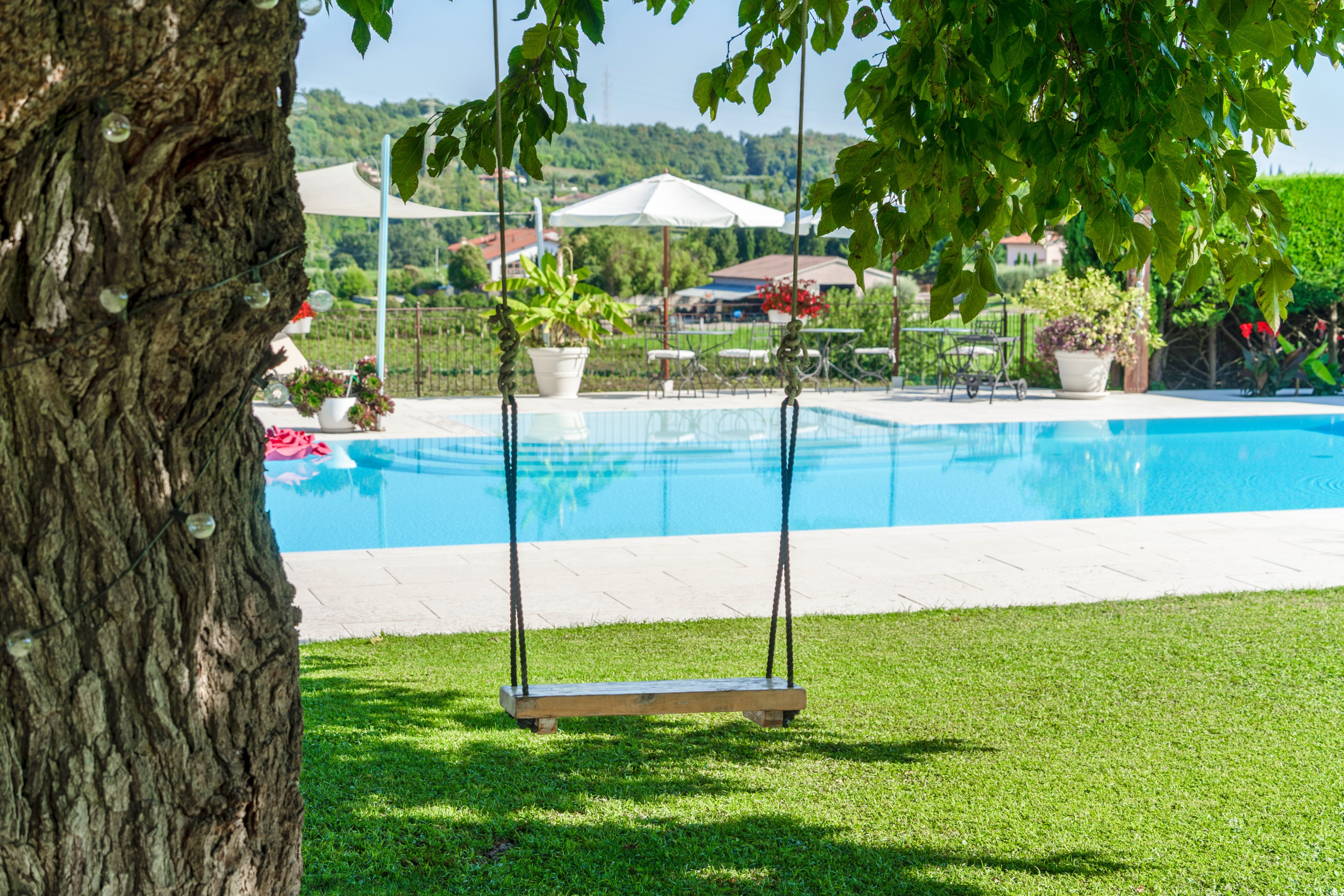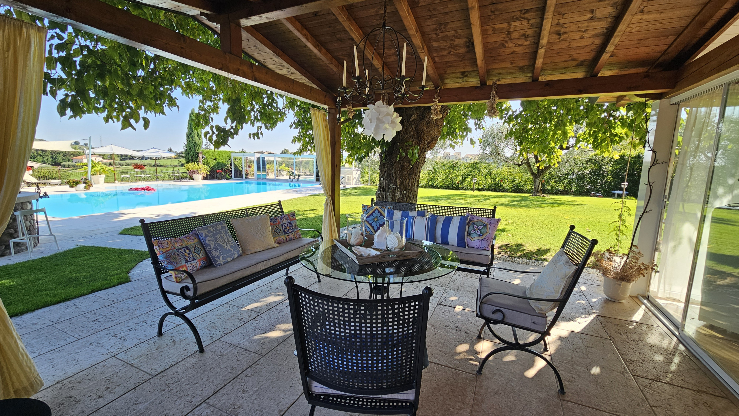 Der Garten, in jedem Detail sorgfältig gestaltet, ist eine Oase der Eleganz: stilvoll eingerichtet, verfügt er über einen Grill, der den Gästen zur Verfügung steht, die zwischen dem Appartement, dem Pool oder der überdachten Panoramaterrasse wählen können. Morgens besteht die Möglichkeit, Joggen zu gehen oder einen regenerierenden Spaziergang zwischen den Weinbergen zu machen, die zum Anwesen gehören.