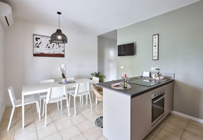Die Wohnung liegt in einer kleinen und ruhigen Wohnanlage, bietet Platz für bis zu 5 Personen und verfügt über einen hellen Wohnbereich mit einer geräumige Küche, die mit Kühlschrank, Gasherd, Backofen, Gefrierschrank, Spülmaschine, Geschirr/Besteck, Kochutensilien, Kaffeemaschine und Toaster komplett ausgestattet ist. Der Wohnbereich verfügt über einem ausklappbaren französischen Bett, einem bequemen Sofa, Sat-TV, WLan und Klimaanlage. Geräumiges Schlafzimmer mit Doppelbett, zweites Schlafzimmer mit zwei Einzelbetten. Badezimmer mit Fenster, Waschmaschine und Dusche.Die geräumige Terrasse mit herrlichem Blick auf den See lädt dank einer komfortablen Markise zum Abendessen bei Sonnenuntergang und zum Essen im Freien ein. Die Wohnanlage verfügt über einen schönen Swimmingpool (garantierte Öffnungsperiode 15/05-30/09) und einen Garten zur gemeinsamen Nutzung. Öffentlicher Parkplatz in der Nähe der Unterkunft. Nicht-Raucher Wohnung. Tiere nicht erlaubt.