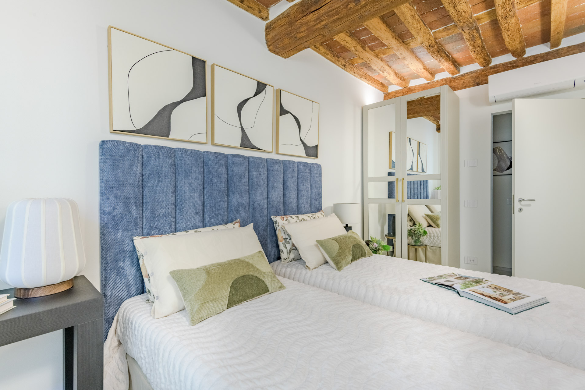Das wirbelige Detail des Uhrenturms entlang der eleganten Via Fillungo scheint von den Fenstern der Wohnung CASA UGOLINO, die im Schatten der Kirche San Michele liegt, nah genug zum Anfassen. Obwohl die Wohnung einfacher ist als die verzierten romanischen Marmore des Doms, ist das Haus für sich elegant, mit Parkettböden, hohen Fenstern, Duschen aus Carrara-Marmor und modernen Inneneinrichtungen und Haushaltsgeräten.Öffne die Fenster und lass die pulsierende Atmosphäre von den Straßen und dem Platz heraufsteigen, oder schalte die Dockingstation ein und höre deine Lieblingsmusik, während du einen lokalen Wein aus Lucca trinkst und die umliegenden Denkmäler betrachtest. Obwohl du von Zeugnissen jahrhundertelanger italienischer Geschichte umgeben bist, verfügt die Wohnung über luxuriöse Annehmlichkeiten des 21. Jahrhunderts wie Smart-TV, WLAN, Waschmaschine + Trockner und Klimaanlage.Ein offener Wohn- und Essbereich, ein großes Fenster aus dem 14. Jahrhundert rahmt den Blick auf die Via Fillungo, einst das Tor des Seidenhandels in ganz Europa im Mittelalter und heute der ikonischste Bezugspunkt der Stadt mit ihren historischen Geschäften.Diese Ferienwohnung befindet sich im ersten Stock und verfügt über 2 Schlafzimmer mit 2 Badezimmern: 1 privates Badezimmer und 1 Bad mit Zugang zu einem Badezimmer auf dem Flur.Ein Aufenthalt in dieser Wohnung bringt Sie ins Herz von Lucca, mit dem Guinigi-Turm, dem Amphitheater, der Piazza Grande (auch Piazza Napoleone genannt), dem Dom, den Puccini-Konzerten in der Kirche San Giovanni, den Stadtmauern, bewachten Parkplätzen, dem Bahnhof und dem Busbahnhof, alle nur 5 Gehminuten oder weniger von der Haustür entfernt. Verbringen Sie den Abend auf dem Platz und hören Sie den Orchestern zu, die klassische Musikstücke improvisieren, oder erleben Sie Ihre Flitterwochen in einer von Pferden gezogenen Kutsche neu. Wenn Sie Ihre ganze Familie im Urlaub haben, werden Sie die Geschäfte, Delikatessenläden und Lebensmittelgeschäfte, Bars und Konditoreien in Reichweite zu schätzen wissen.VERFÜGUNG:Die Wohnung befindet sich im 1. Stock ohne Aufzug.Eingang; Wohn-/Esszimmer – Wohnbereich und voll ausgestattete Küche; Garderobe; Doppelzimmer; Badezimmer (Dusche); Doppelschlafzimmer mit privatem Badezimmer (Dusche).WLAN-Geschwindigkeit: 135 MbpsNicht im Mietpreis enthalten:Touristensteuer (obligatorisch und von der Lokalverwaltung vorgeschrieben)Zwischenreinigung und/oder wöchentliche Reinigung sowie Handtuch- und BettwäschewechselBabybettwäscheIm Mietpreis enthalten:Abschließende ReinigungHandtücher und BettwäscheElektrizitätGasWasserInternet-WLANHochstuhl (auf Anfrage bei der Buchung)Babybett (auf Anfrage bei der Buchung)26 Bewertungen