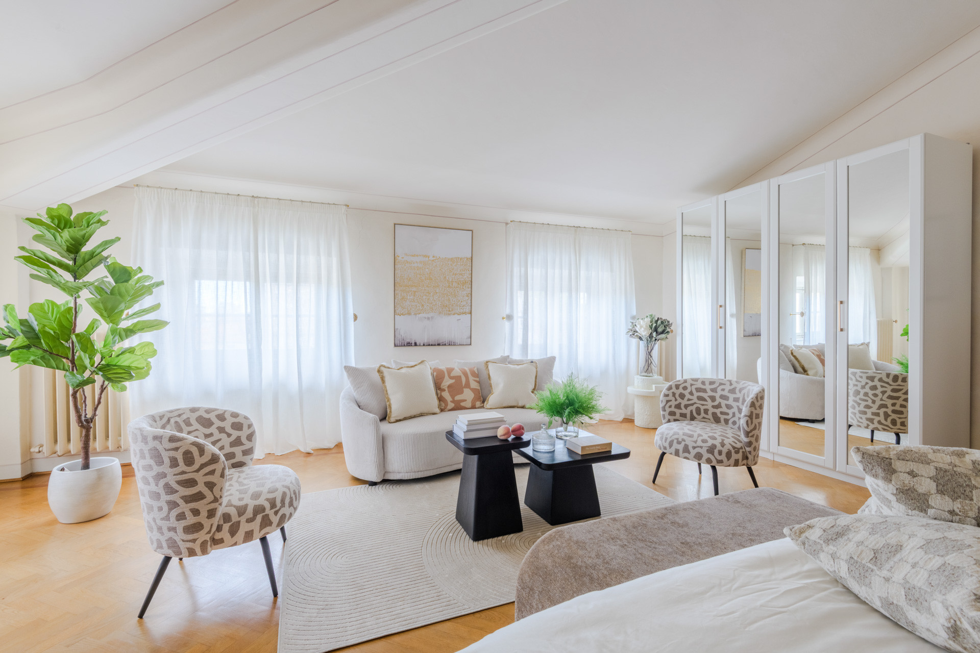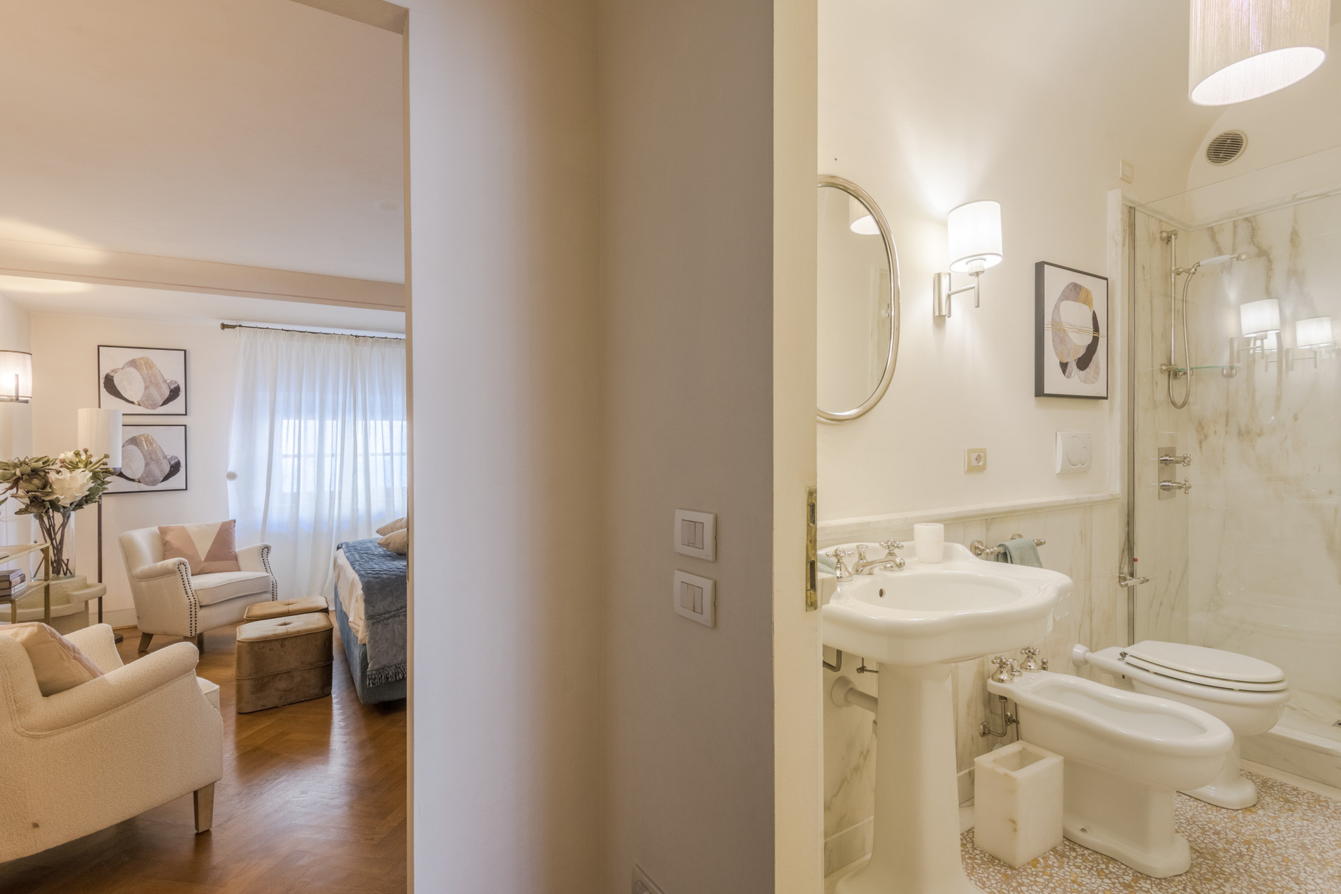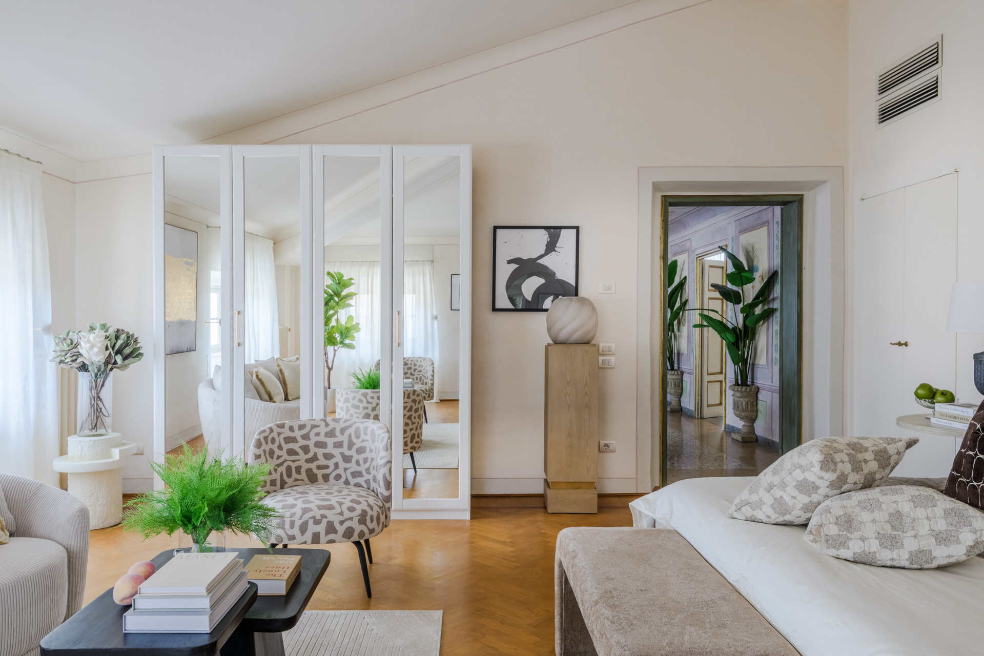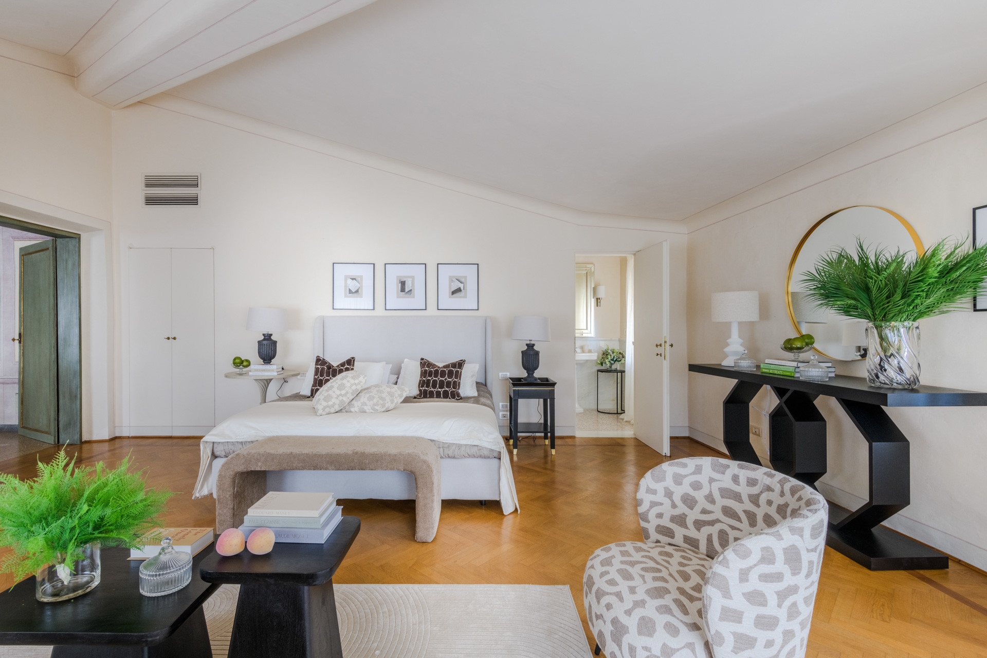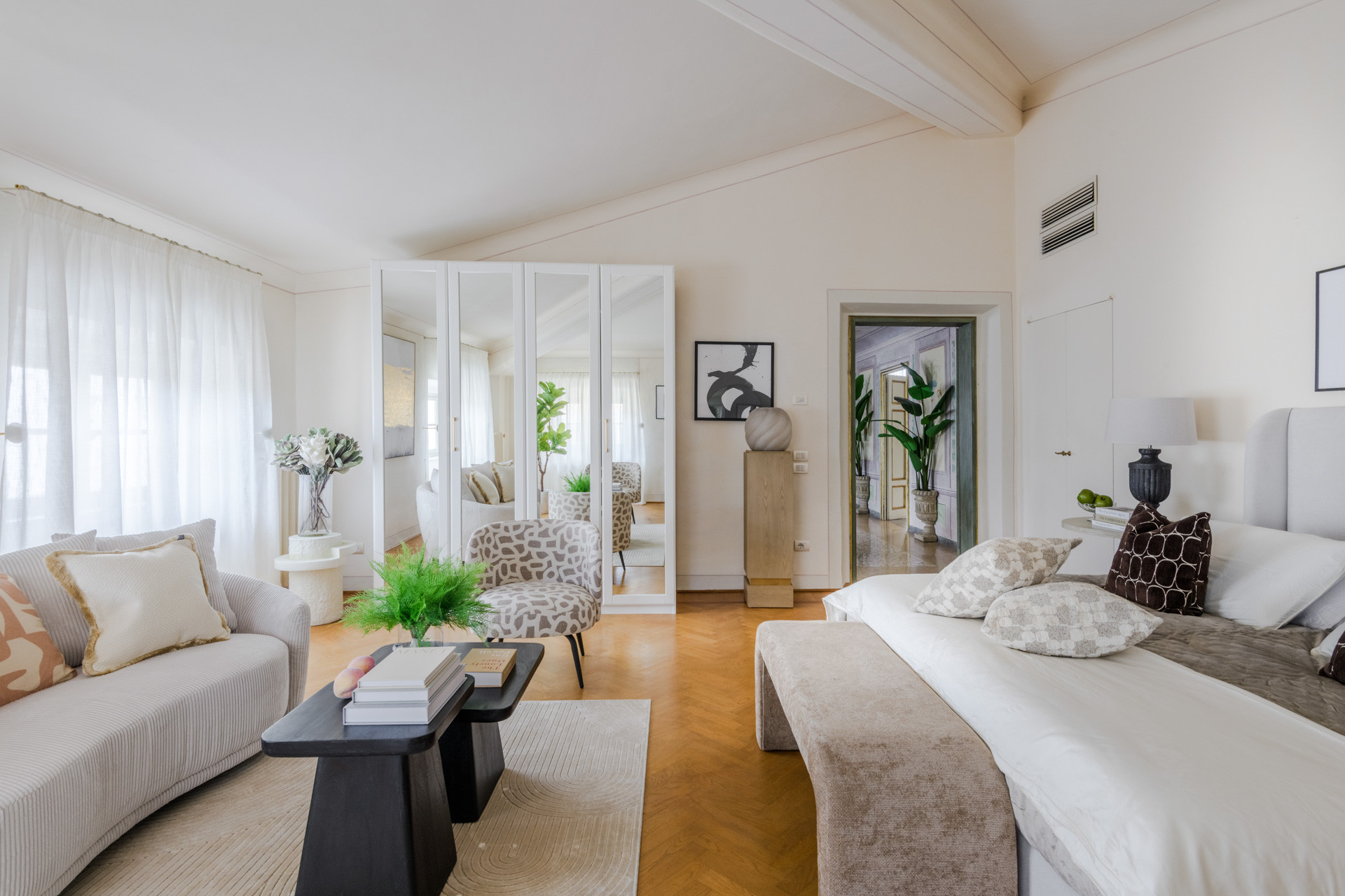 Kürzlich Ende 2025 renoviert, verbindet das Penthouse nahtlos edles Erbe mit zeitgenössischer Eleganz. Die Wohnung verfügt über vier prunkvolle Suiten, von denen jede ein wunderschön ausgestattetes Badezimmer im klassischen Design besitzt, in dem italienisches Handwerk auf moderne Funktionalität trifft. Hochmoderne Interieurs, erlesene Materialien und maßgeschneiderte Details existieren harmonisch innerhalb einer Architektur von seltener Charakteristik.