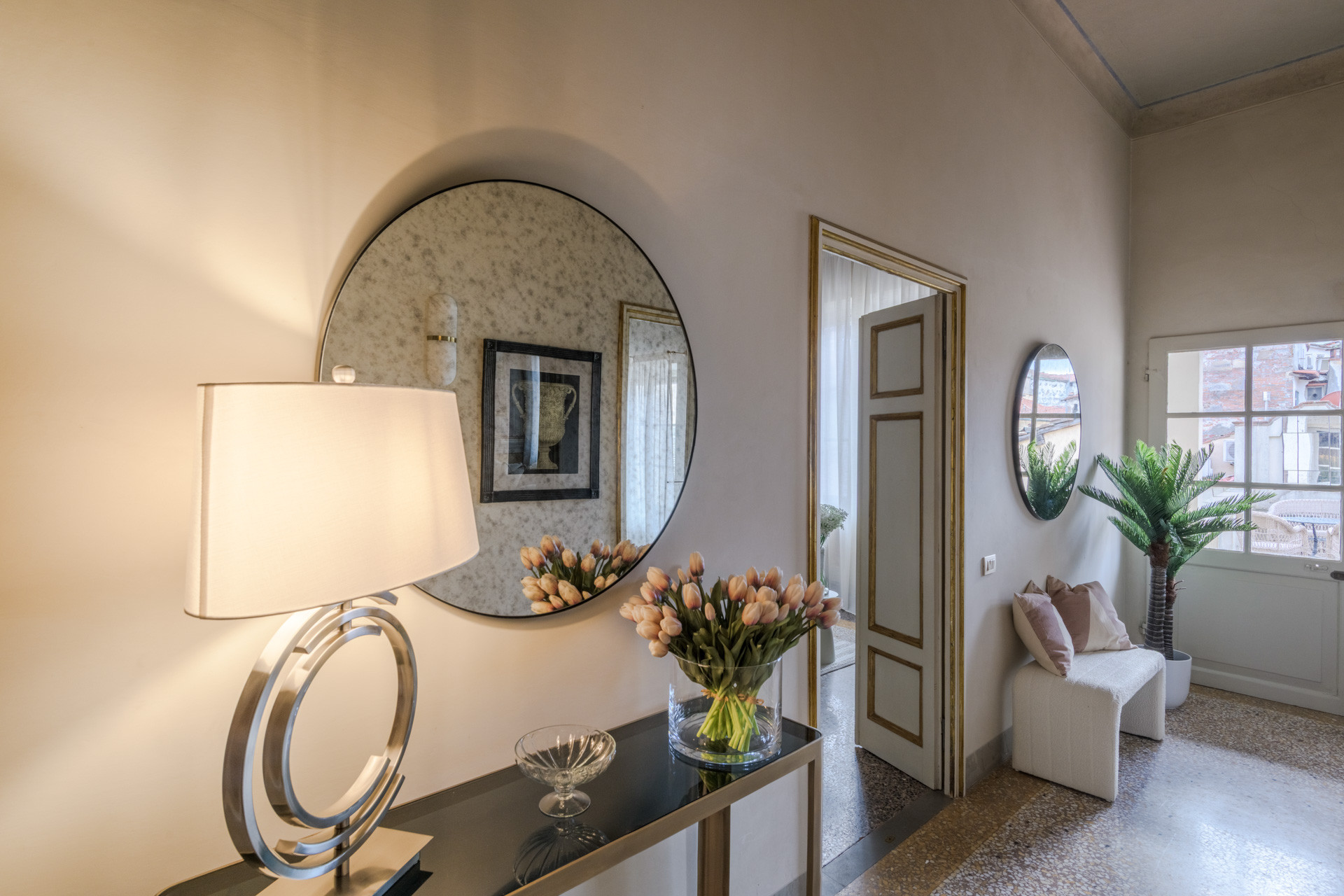 Diese Penthouse-Wohnung ist mehr als nur eine Luxus-Mietwohnung - sie ist ein Platz in der ersten Reihe der Geschichte, ein eleganter Rückzugsort, der über einer der bezauberndsten Städte Italiens schwebt, wo sich Kunst, Gastronomie und das tägliche Leben unter Ihren Fenstern entfalten.