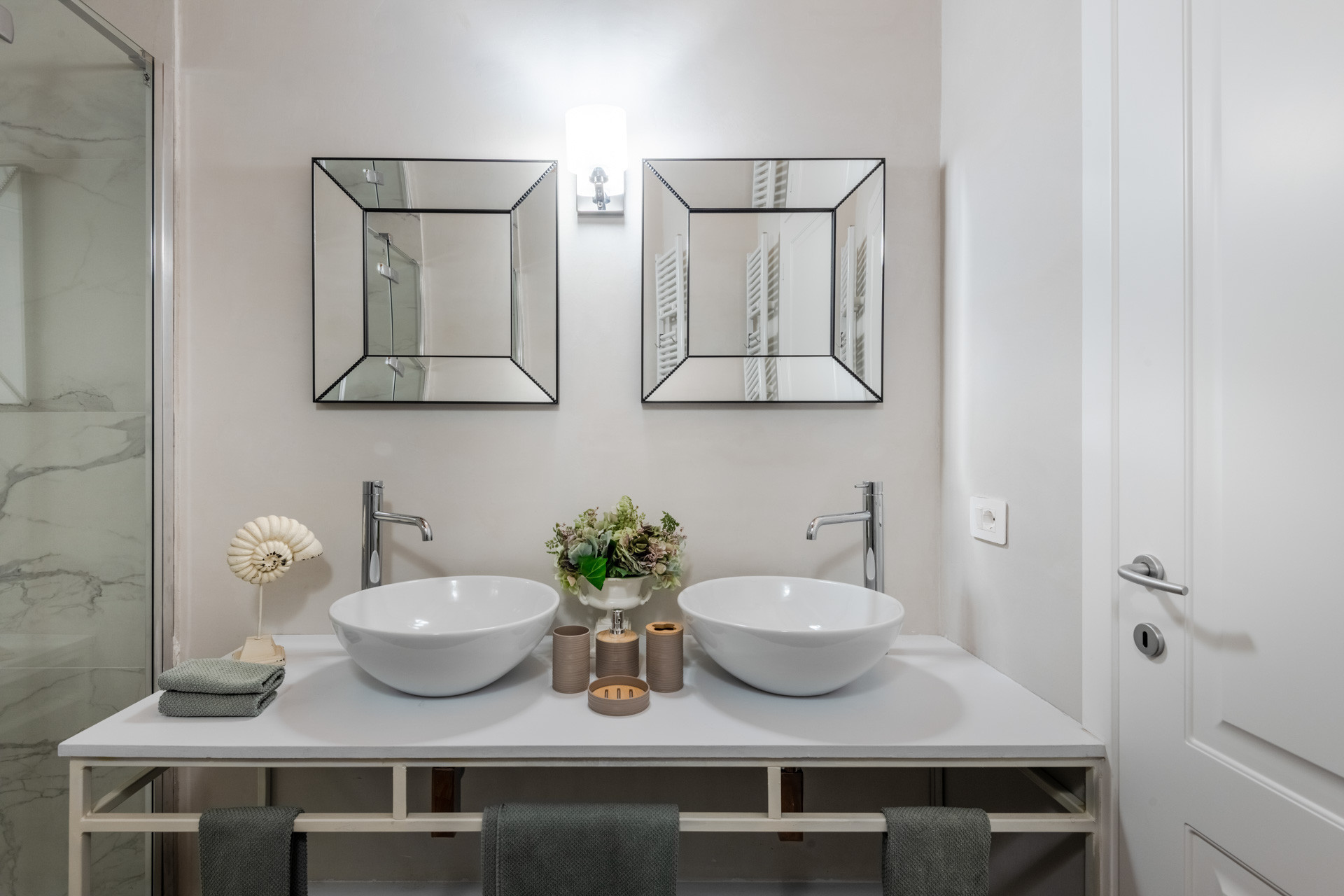 Die Wohnung verfügt über zwei gemütliche Schlafzimmer mit jeweils einem Doppelbett, die Ihnen einen erholsamen Schlaf garantieren. Zwei moderne Duschbäder sorgen für ausreichend Komfort und Privatsphäre. Die komplett ausgestattete amerikanische Küche lässt keine Wünsche offen - von Kühlschrank und Gefrierschrank über Geschirrspüler und Waschmaschine bis hin zu Kaffeemaschine und Toaster ist alles vorhanden, was das Herz begehrt.