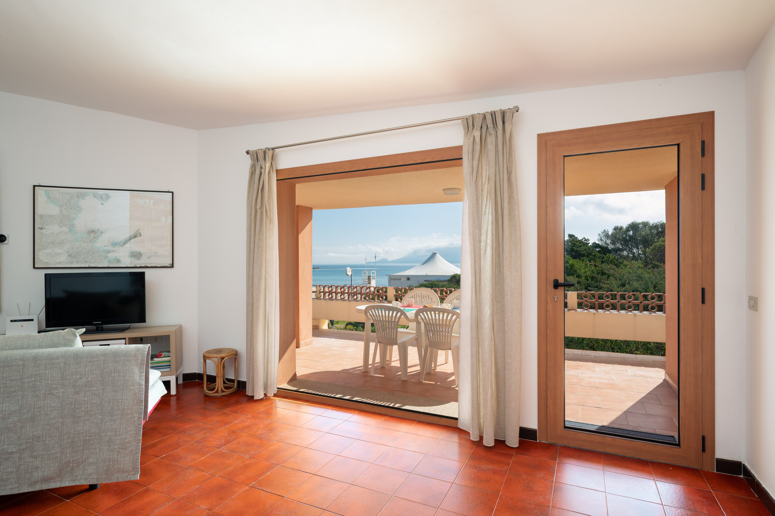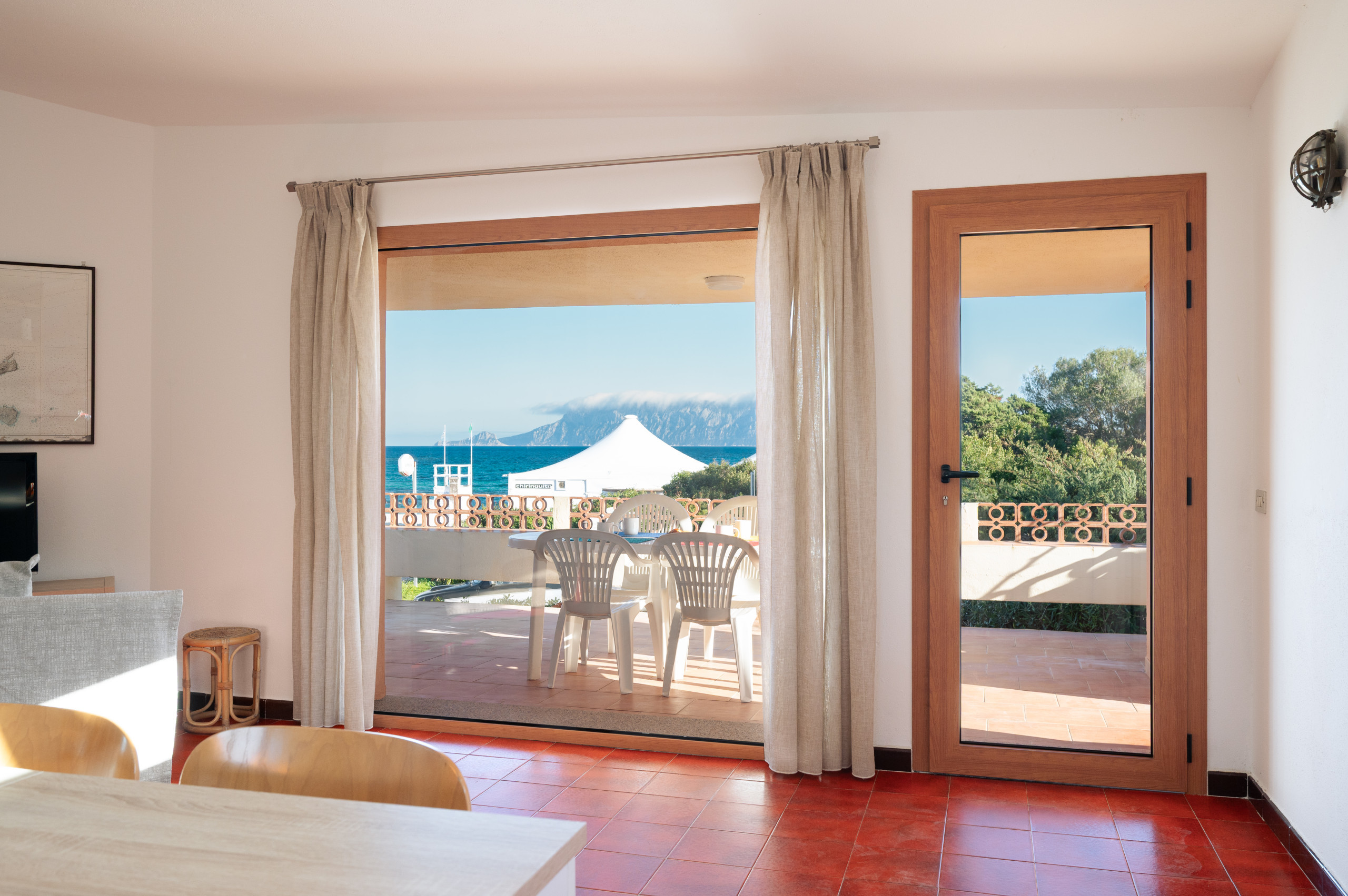 Die möblierte Terrasse bietet einen schönen Meerblick – ideal für Frühstück im Freien, ruhige Nachmittage oder einen Aperitif bei Sonnenuntergang. Ein eigener Außenparkplatz steht ebenfalls zur Verfügung.