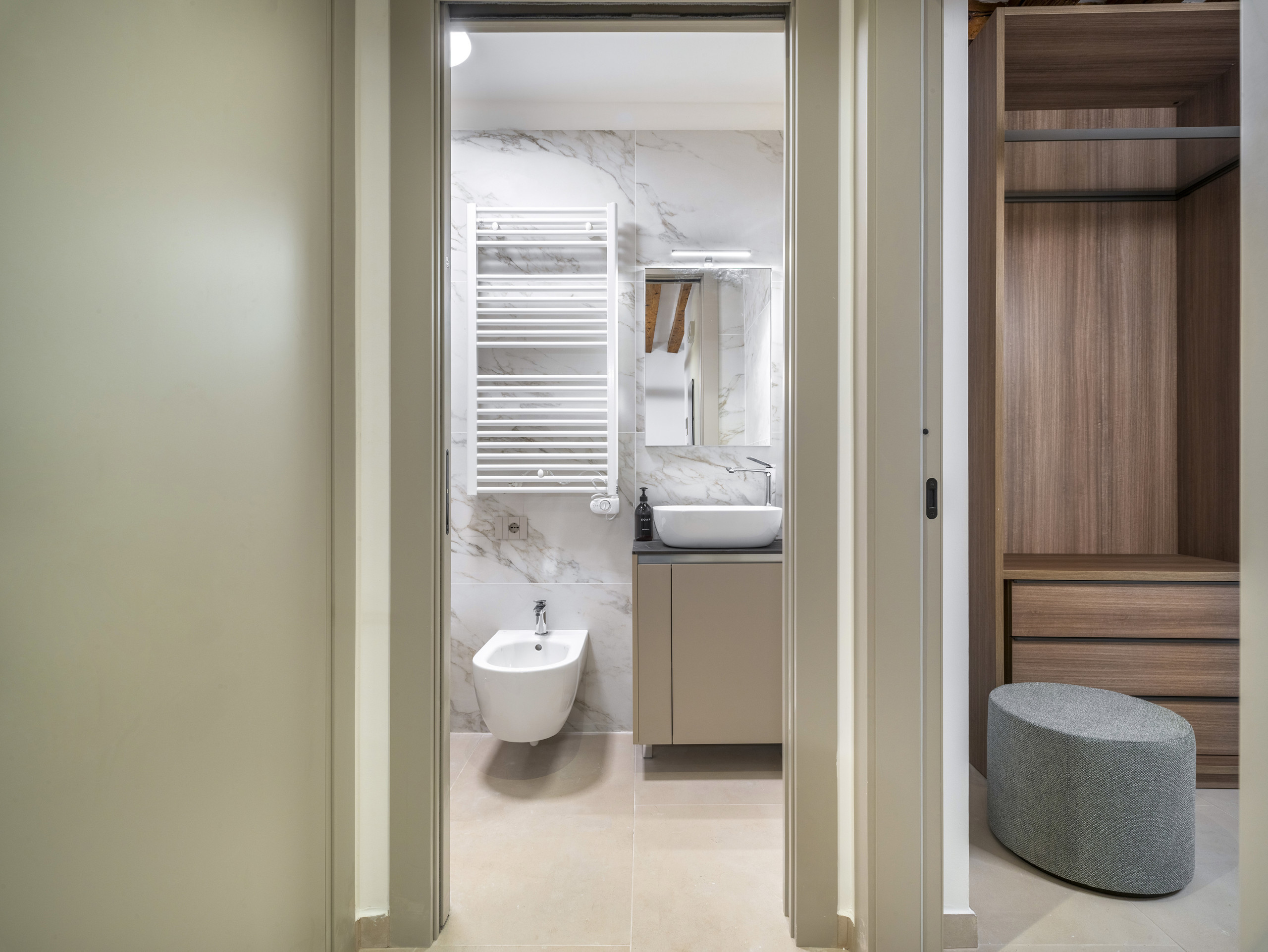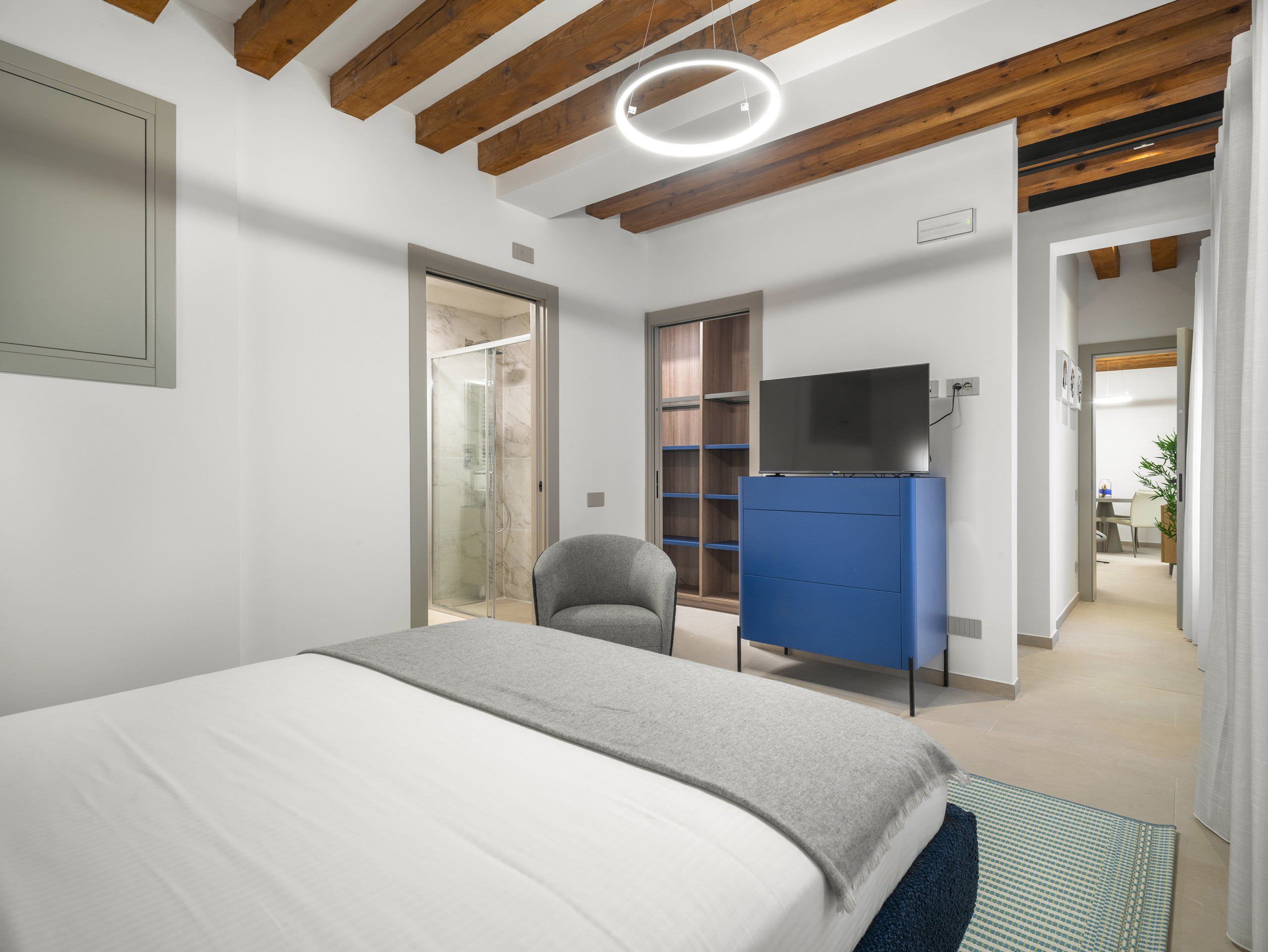 Die Ferienwohnung in Venedig verfügt über 2 Schlafzimmer und hat eine Kapazität für 4 Person(en). Unterkunft verfügt über 60 m². Die Unterkunft verfügt über ein Bügeleisen/-brett, ein Internetanschluss (WLAN), ein Föhn, eine Wärmepumpe, eine Klimaanlage, ein Fernsehgerät.Die separate Küche mit Induktions-Kochfeld ist ausgestattet in einen Kühlschrank, ein Backofen, einen Gefrierschrank, Geschirr/Besteck, Kochutensilien, einen Toaster, einen Wasserkocher und eine Saftpresse.