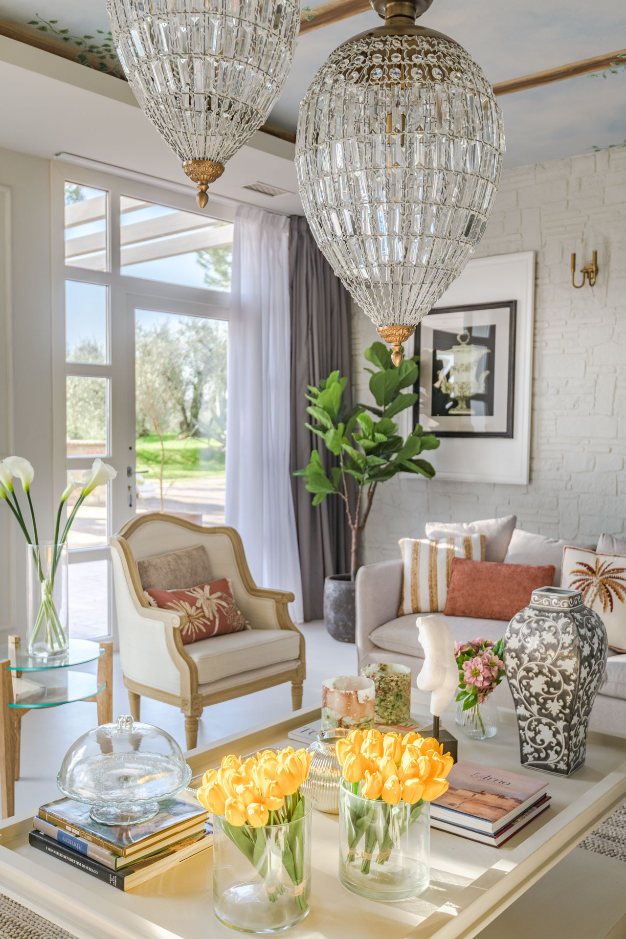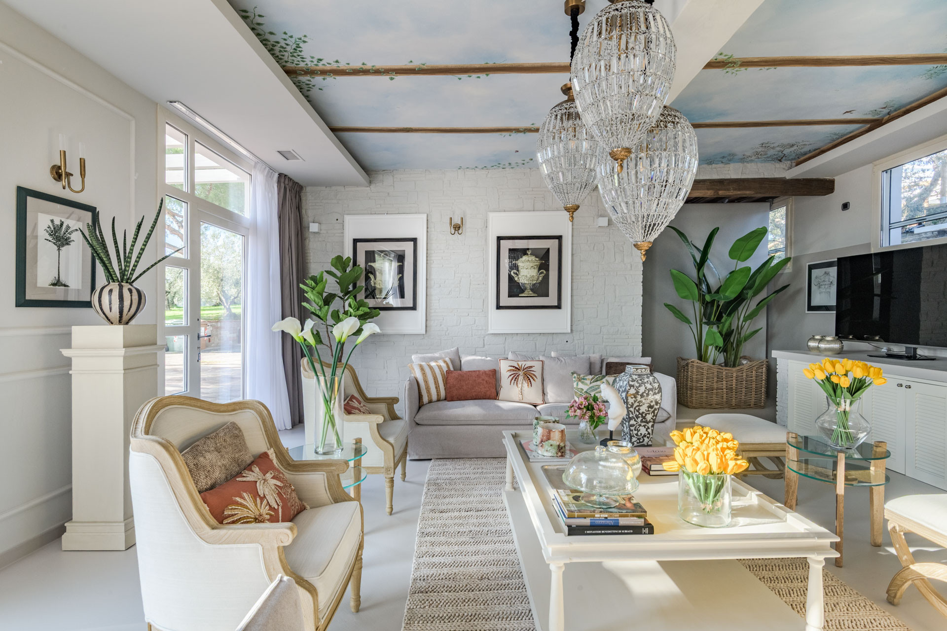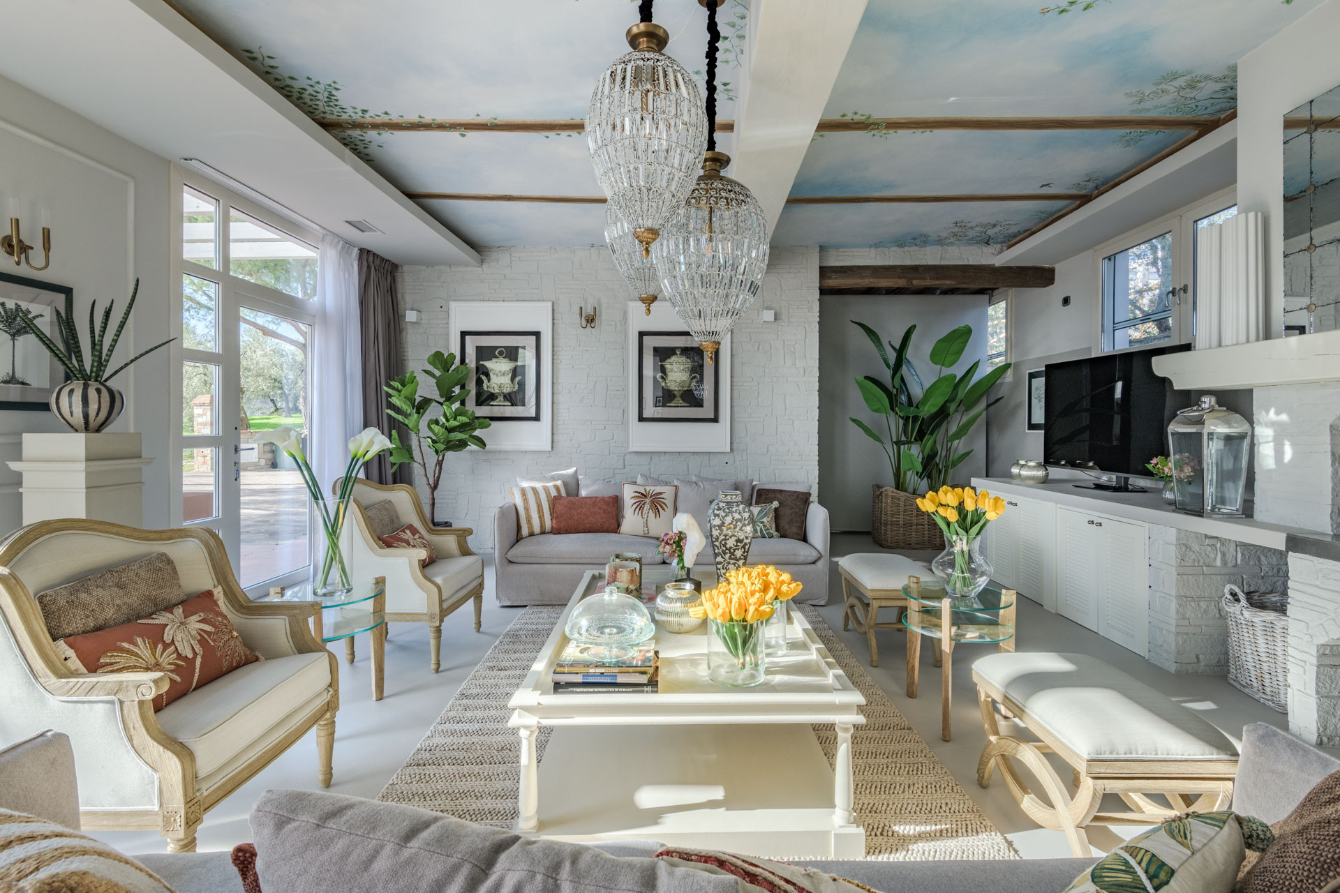 Totale Entspannung: Am Haupteingang erwartet eine möblierte Terrasse mit Sofas und Sonnenliegen. Im Garten bietet ein beheizter Whirlpool atemberaubende Ausblicke über die kultivierten Hügel.