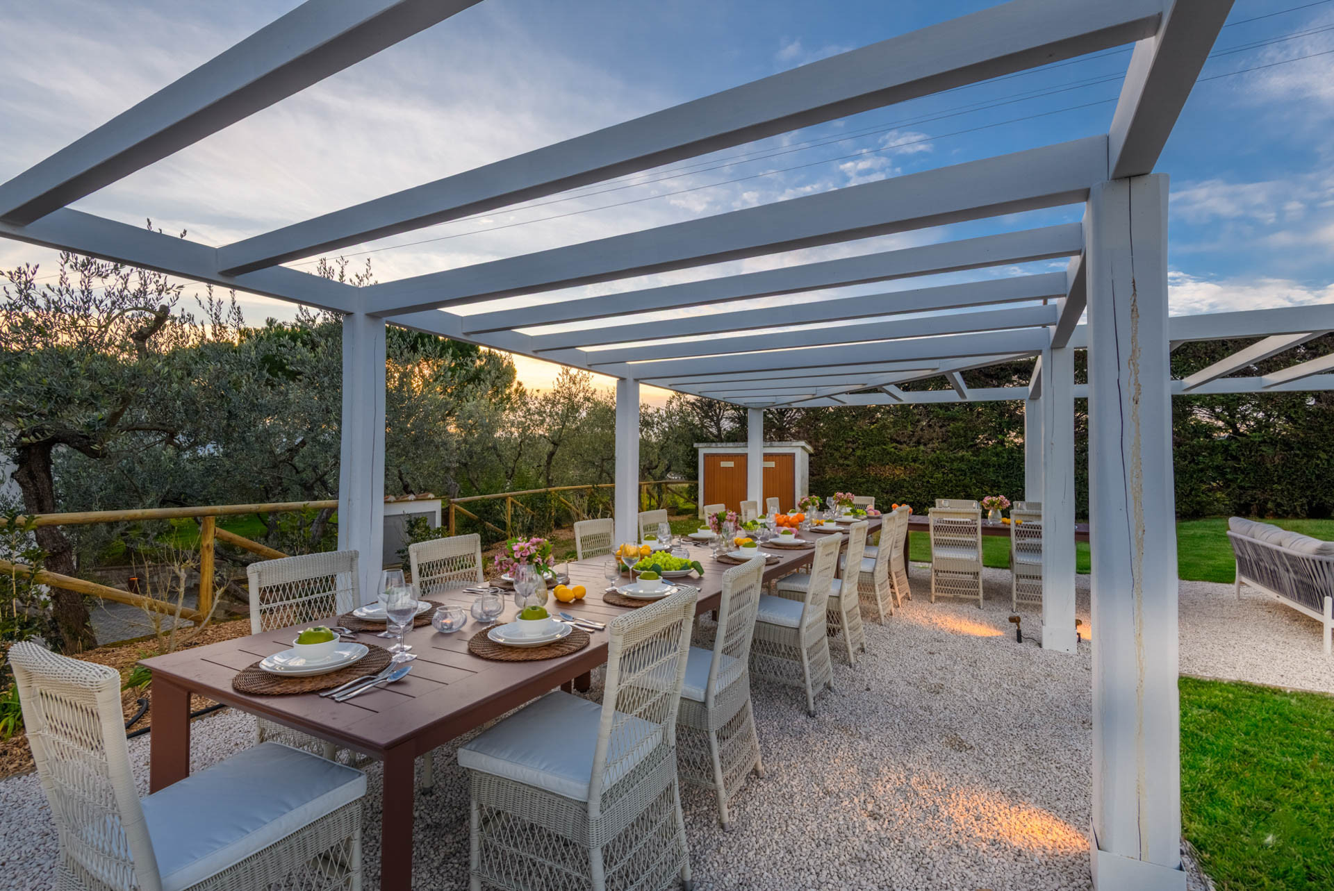 Die wahre Seele der Villa ist der Außenbereich, der direkt vom Esszimmer aus zugänglich ist: