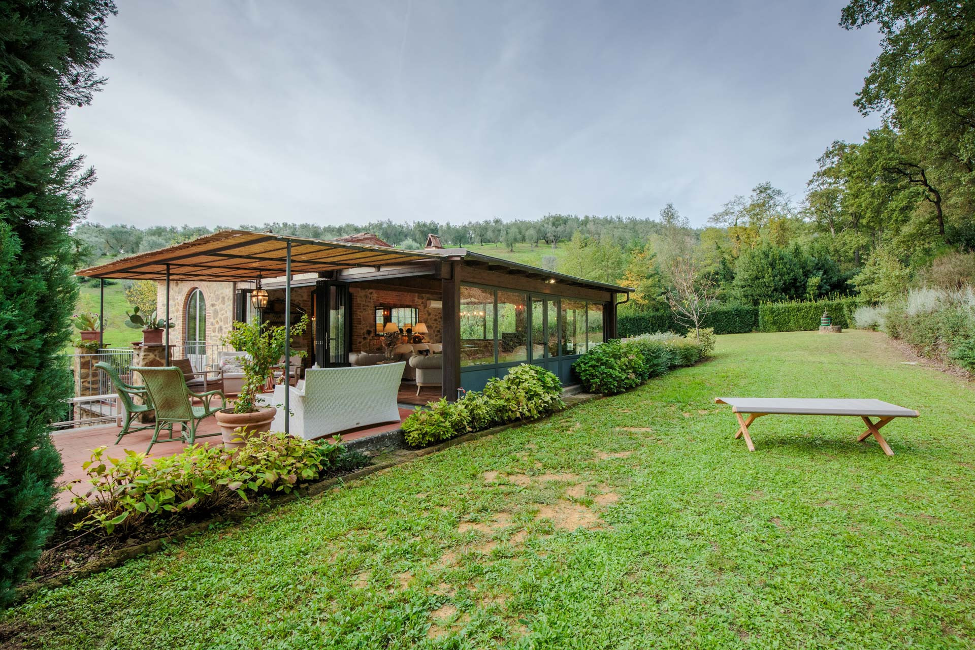 Situated amongst the rolling hills of Lamporecchio, easy access to Lucca, Pisa, Florence and Pistoia and surrounded by olive groves and pristine views, this secluded five-bedroom offers the perfect escape for a romantic honeymoon, family vacation, or couples retreat.