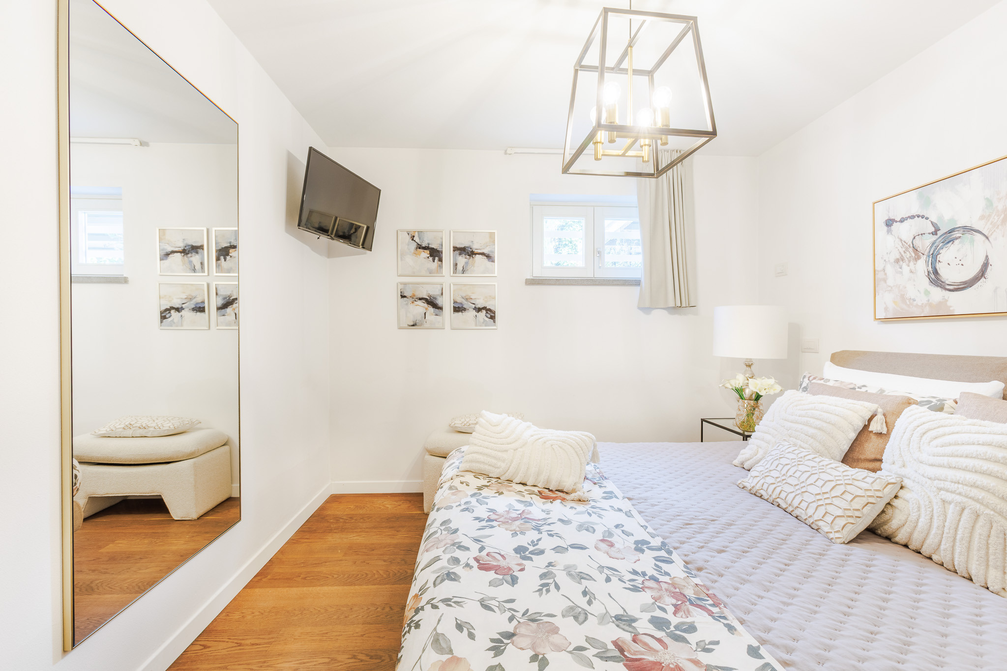 Fünf elegante Schlafzimmer bieten Platz für bis zu zehn Reisende, was die Villa zu einer idealen Ferienunterkunft für Familien oder große Gruppen von Freunden macht.