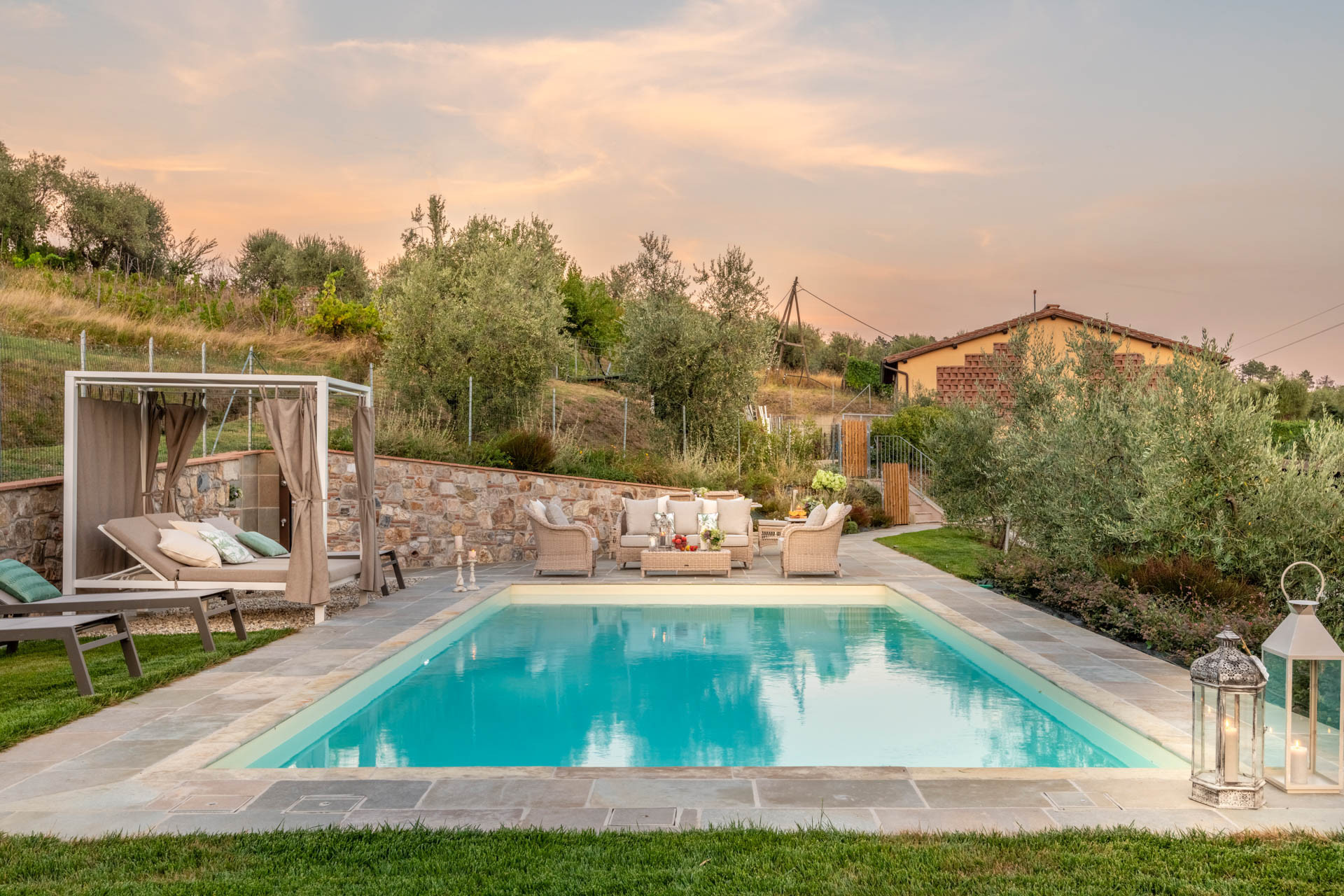 If you have always dreamt of delightful days and enchanting Tuscan nights then Villa Gabry is your home away from home. The peaceful setting and Lucca skyline offers the perfect base for first time Tuscany travellers eager to both relax in the quietness of nature and to explore the many sides of this beautiful area. Your itinerary will include thrilling stops at ancient churches or small hill-top villages such as the church of Pieve Santo Stefano or the nearby Lucca town centre at just 4 kms away. The panoramic roads that wind throughout the valleys will generously offer you romantic views and inspiring sunsets. Hidden gems such as the renowned Vipore restaurant will offer life-changing experiences.