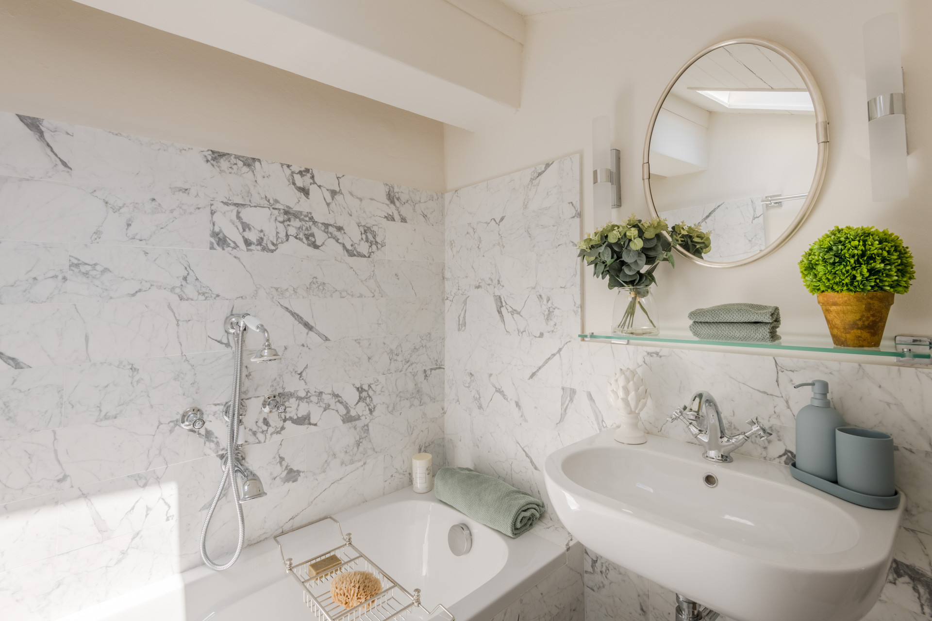The second floor contains a charming bedroom with en suite bathroom (including bathtub).