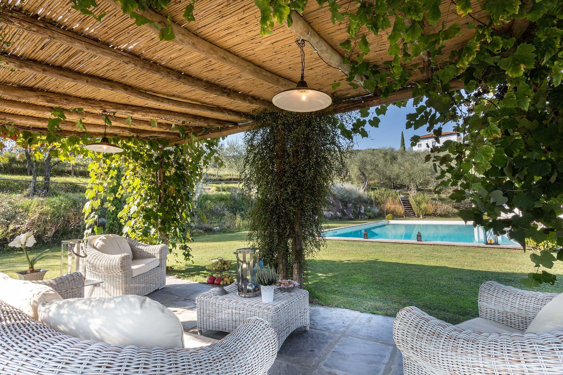 Capture soaring views of Lucca and its wine and olive oil region from every bedroom at this traditional villa in Tuscany. Spend lazy afternoons watching the country life below while stretched out in a lounger by the pool. At night, sip local wine after an alfresco dinner at the poolside veranda. As a wine, a Red is a must. You’ll find this local favorite nearby at the many wineries around VILLA ARSINA. And you’ll find more, including Organic Rosé and Sparkling Whites. Young winemakers with modern visions are seeking for old roots while creating the wine of their dreams and many of those founded their winery here around: it’s a full world to discover!